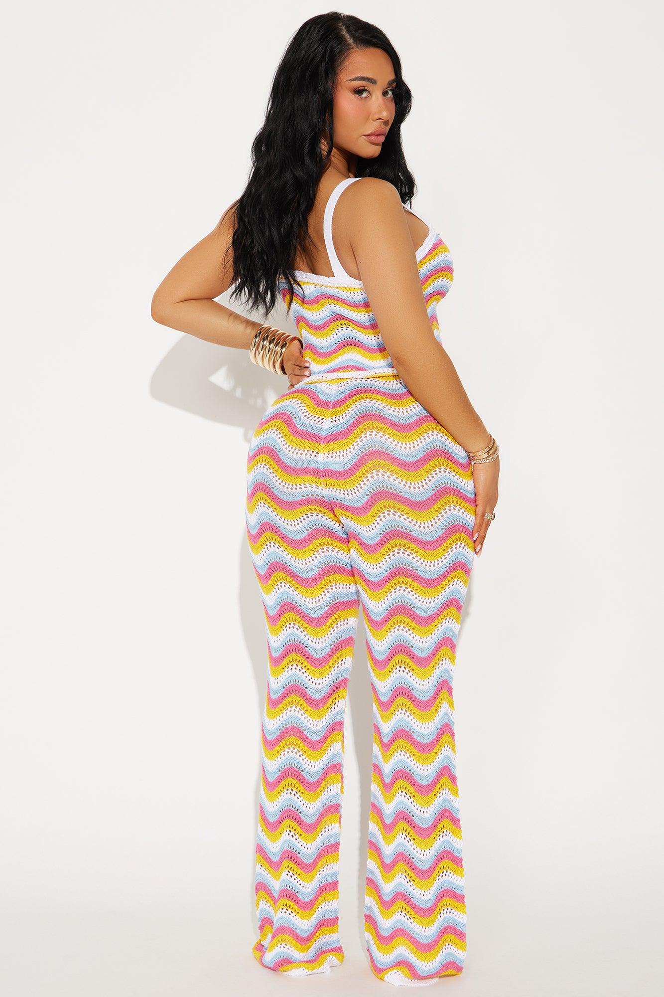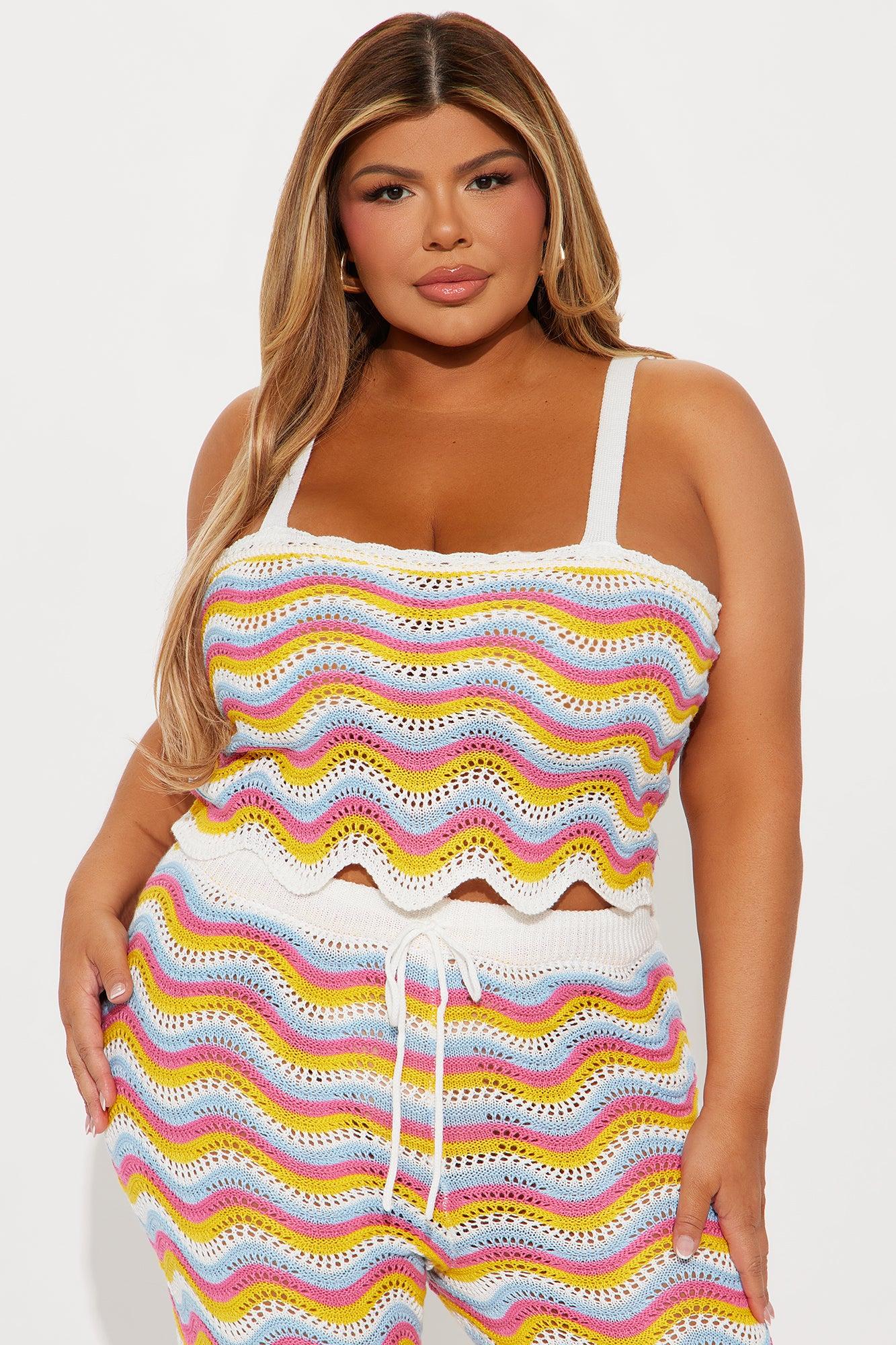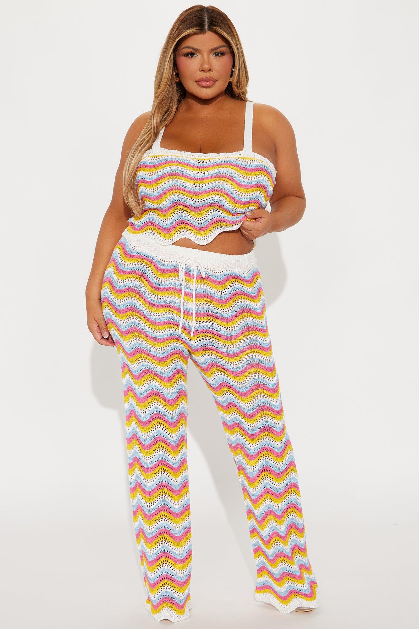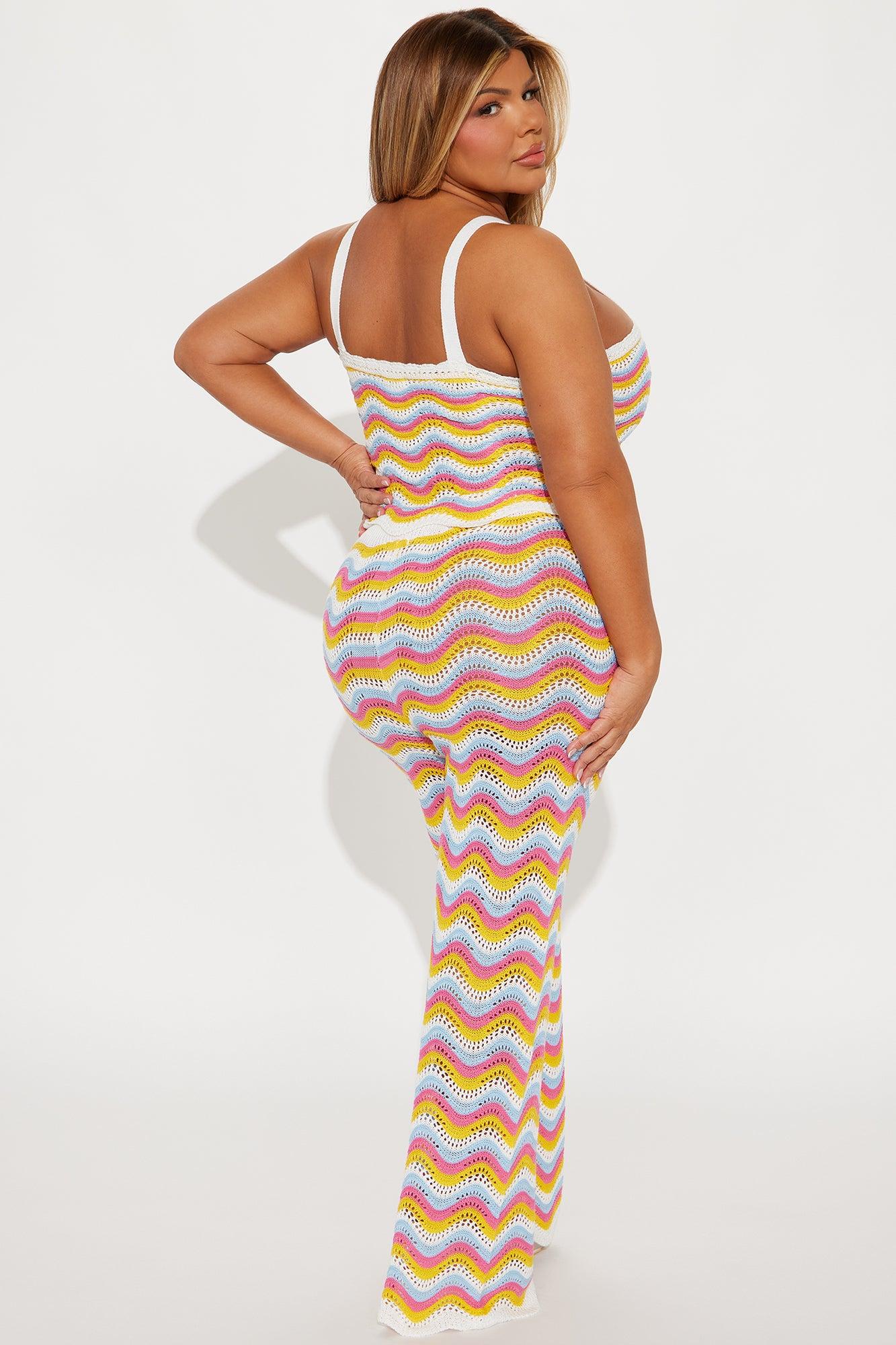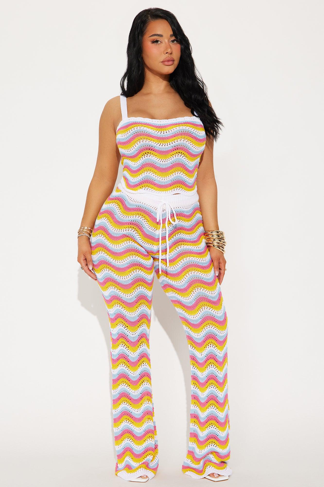 Available In Ivory/combo. Crochet Tank Top And Pant Set Stretch Elastic Waistband 100 % Acrylic Imported