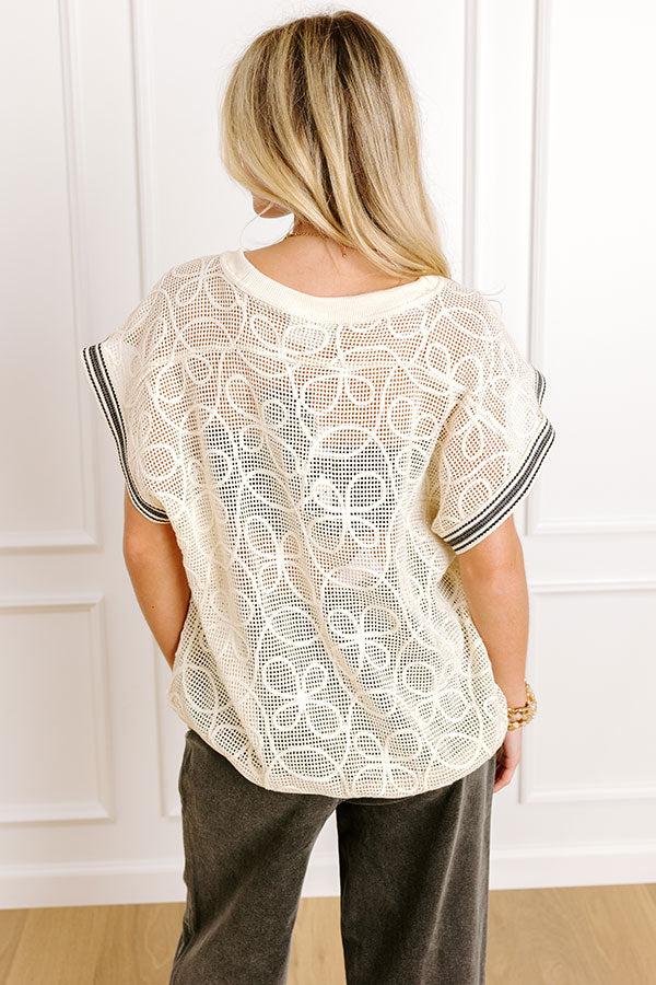 - She's cute, she's detailed, and she's doing the most! This trendy knit top features embroidered accents and a woven trim that brings a pop of chic energy.