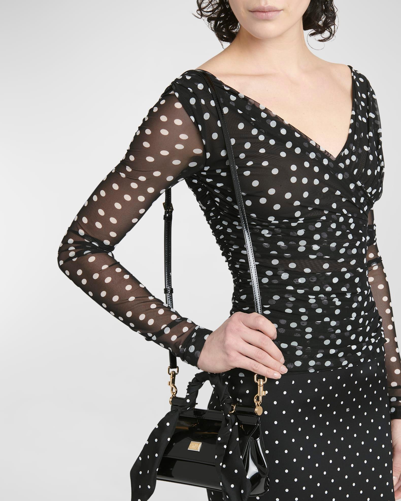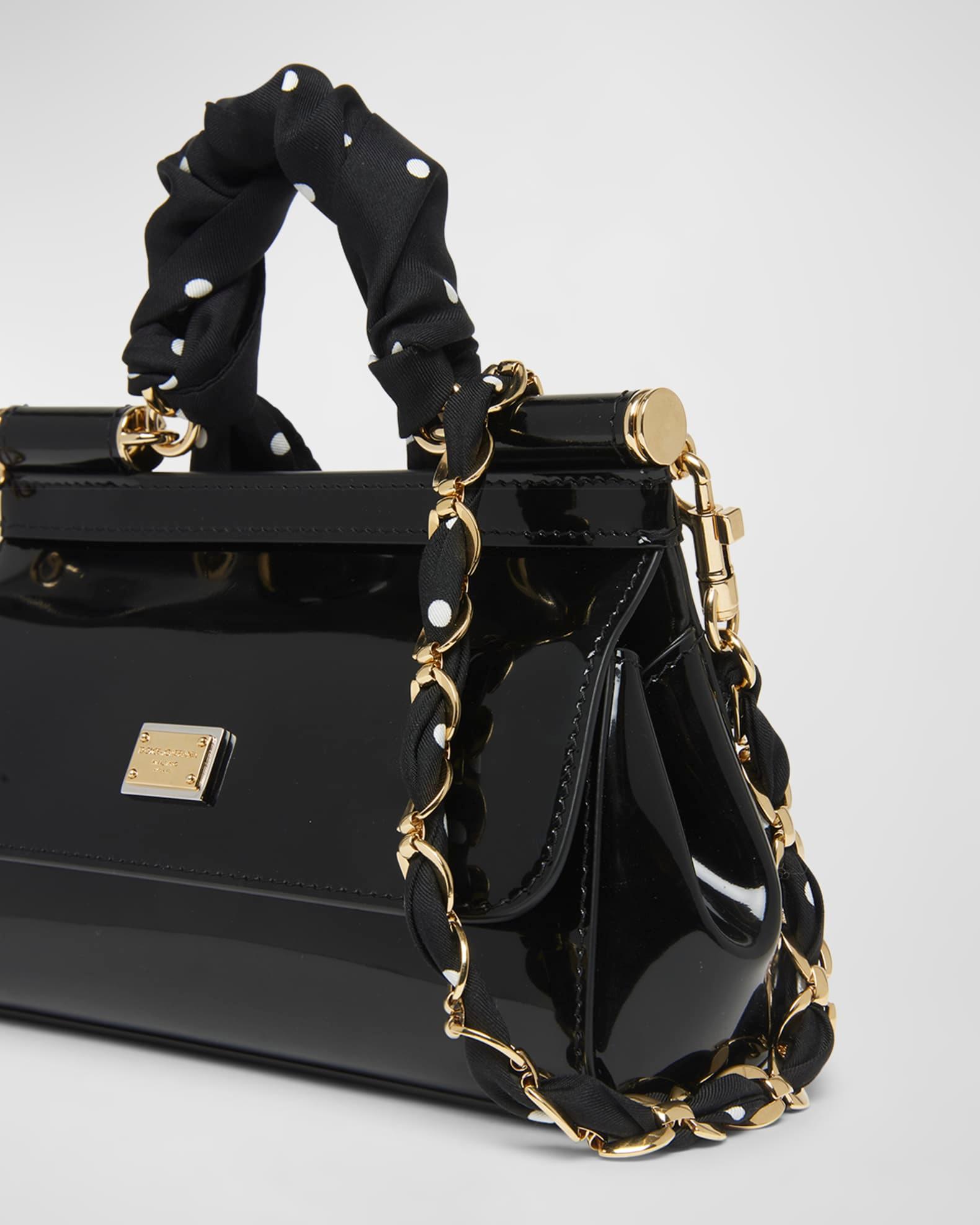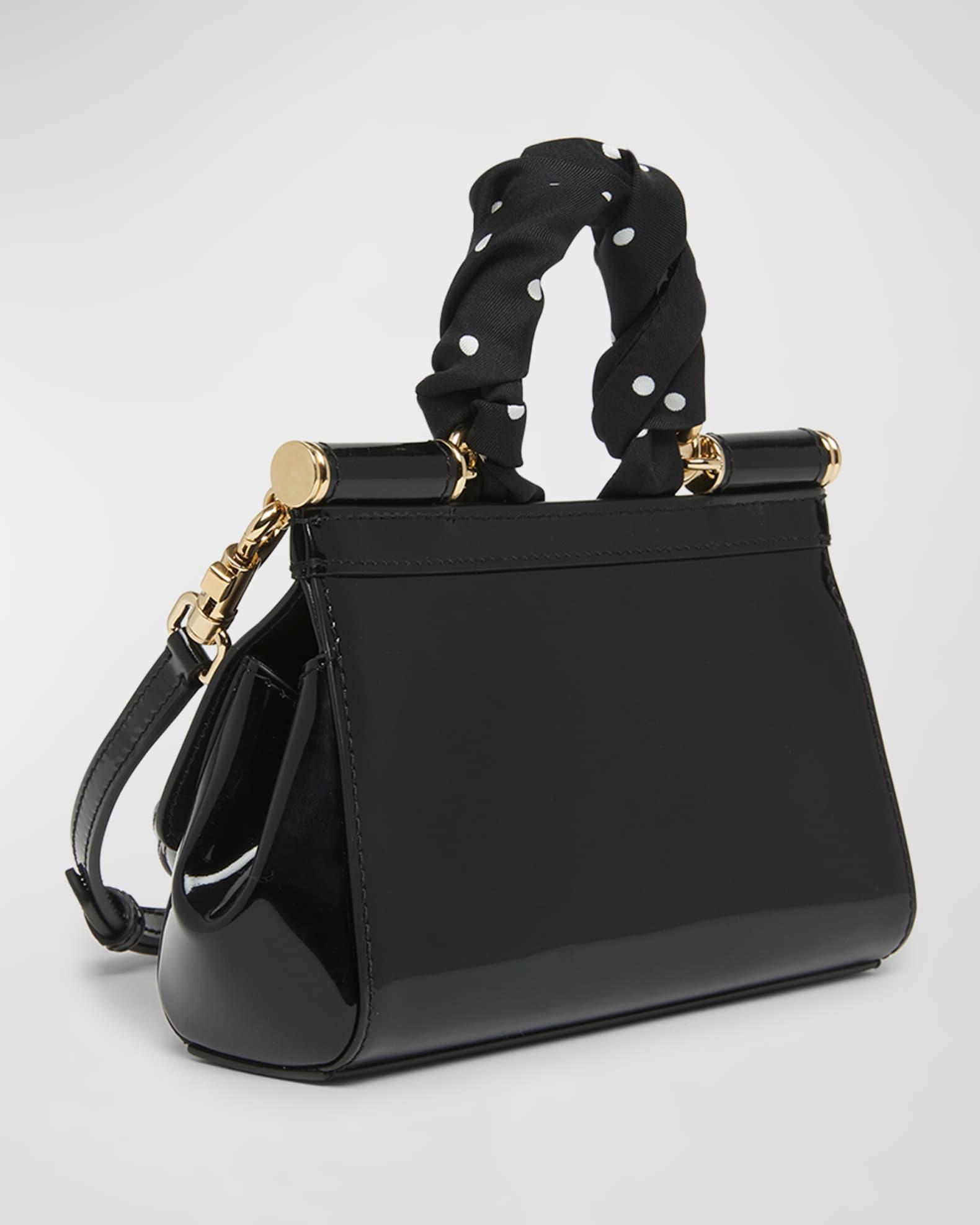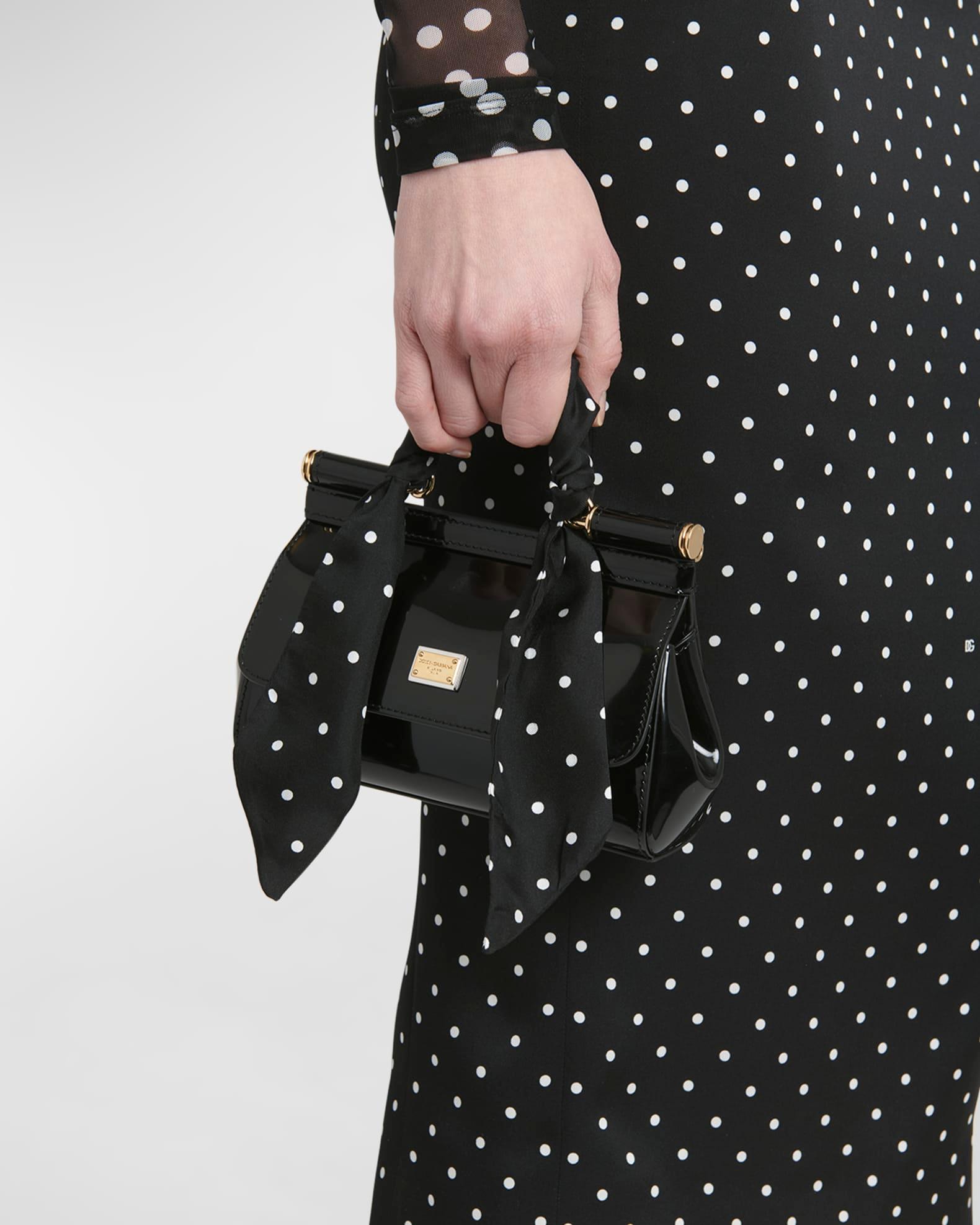 Dolce&Gabbana "Sicily" top handle bag in leather and cotton Polka dot silk scarf top handle Detachable, adjustable crossbody strap Can be worn as a top handle or crossbody bag Flap top with magnetic closure Interior, one slip pocket Approx. 5.1"H x 7.5"W x 2.4"D Made in Italy