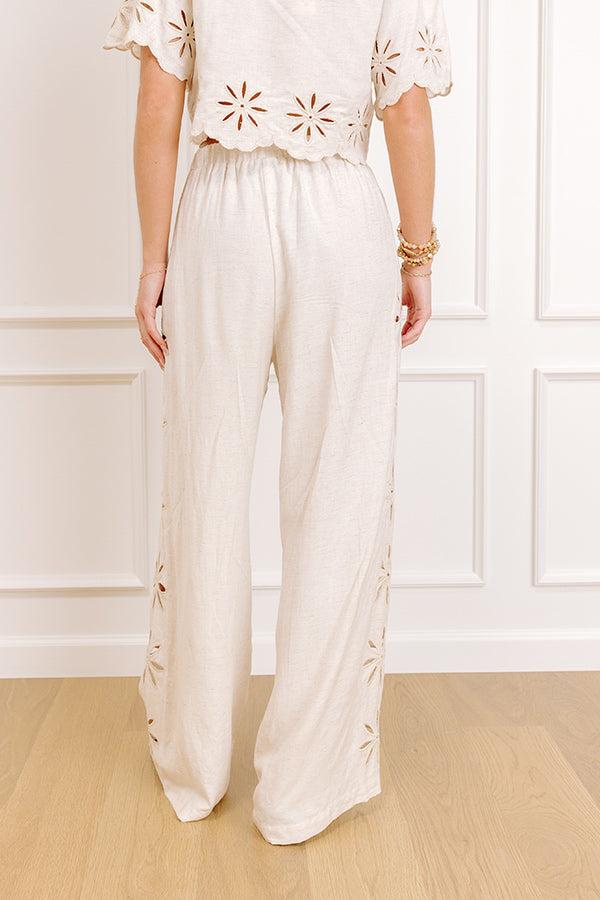 - Get all tied up in cuteness with the sweetest linen-blend pants! Their trendy embroidered floral cutouts give it a pretty pop of style.