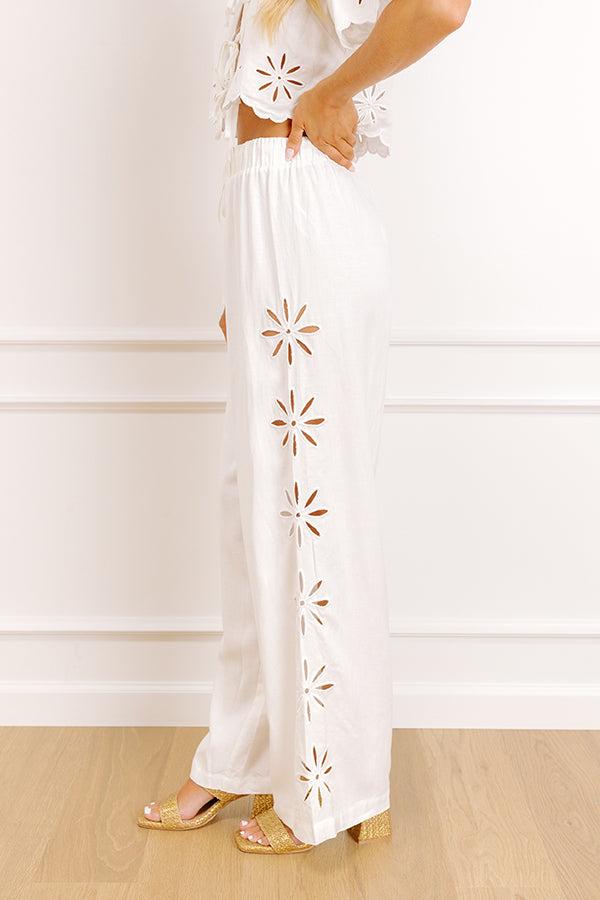 - Get all tied up in cuteness with the sweetest linen-blend pants! Their trendy embroidered floral cutouts give it a pretty pop of style.