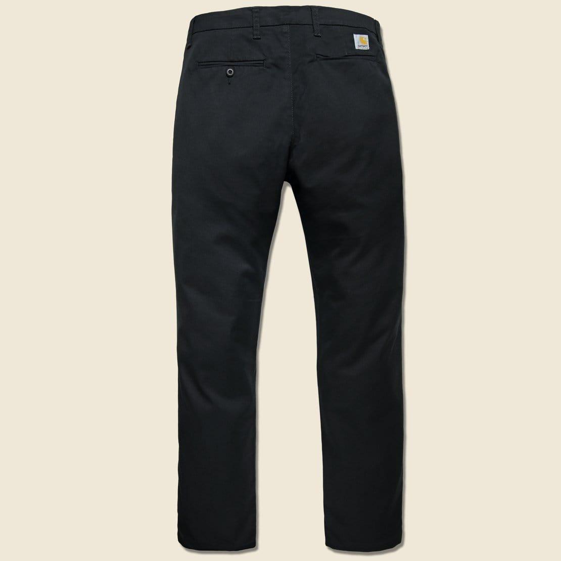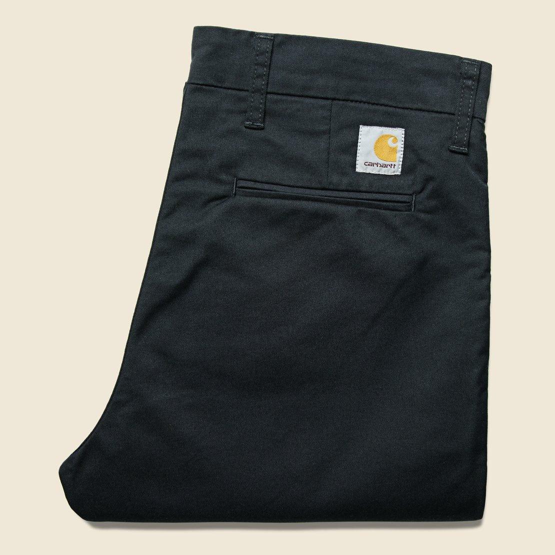 The Sid Pant from Carhartt WIP is a slim-cut, cotton-blend twill chino pant that’s tapered through the leg for a more modern look. Constructed from a cotton-poly stretch twill, designed for comfort and ease of movement and finished with two side pockets, two reverse pockets and bartack stitching at vital stress points to make ‘em last. 8.6 oz cotton-blend twill Zip fly, with button closure Bar tack stitching along stress points Reinforced belt loops Carhartt ‘C’ logo label Slim, tapered leg Fits true to size Materials: 46% cotton, 38% T400, 16% Polyester The following measurements are for size 32: Rise: 10” | Inseam: 31 ½” | Thigh: 11” | Leg Opening: 14”