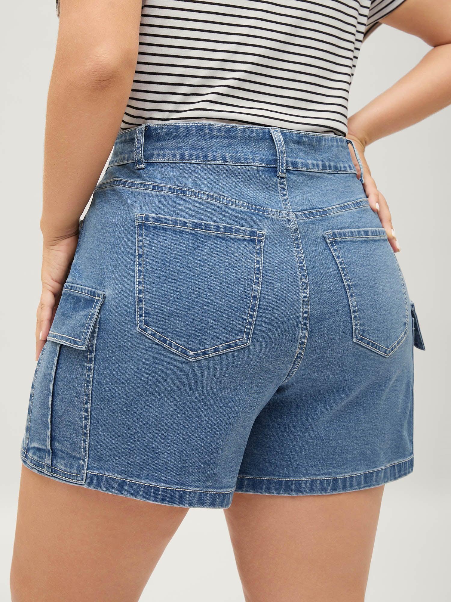 Side Pockets Wide-Leg Denim Shorts Female