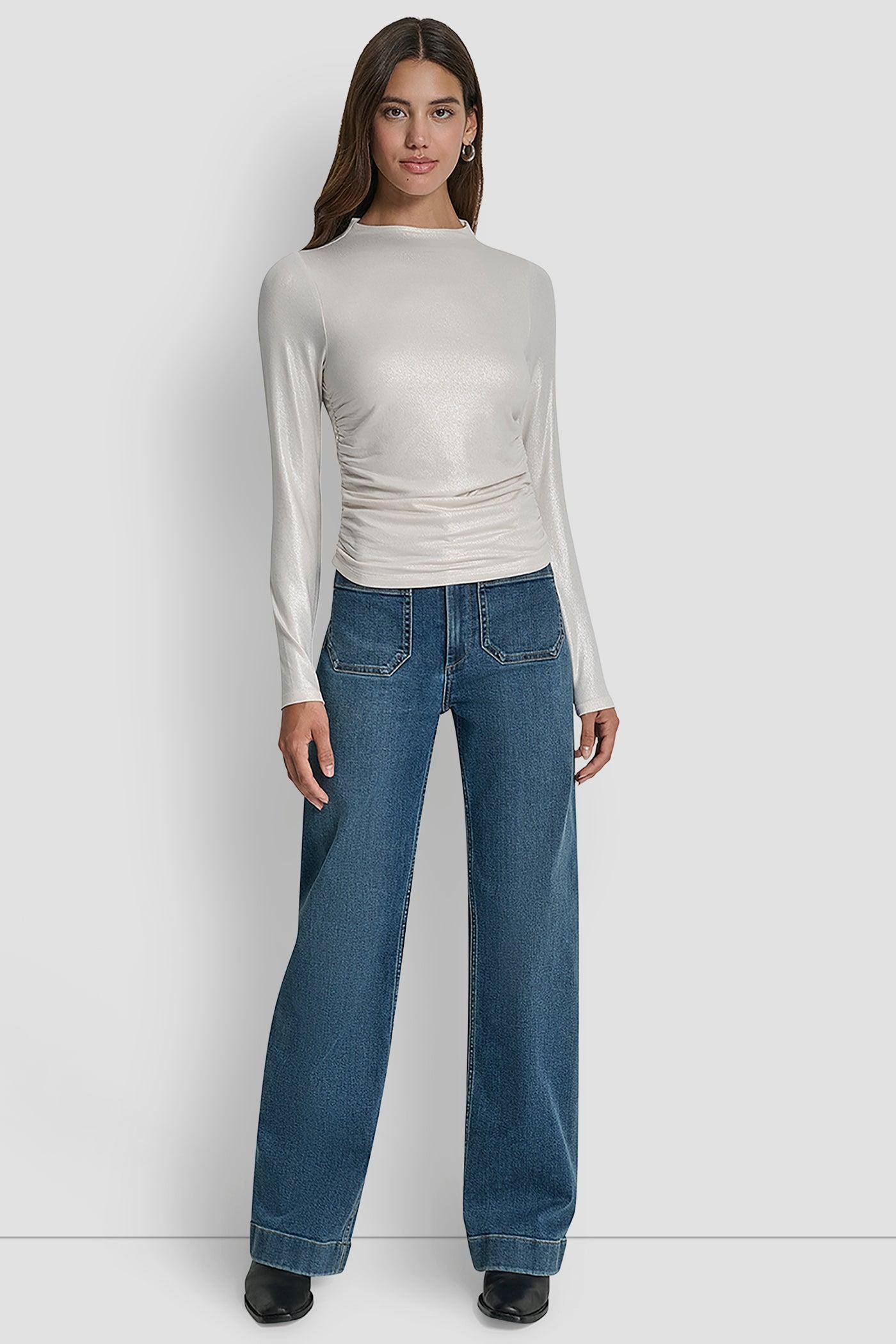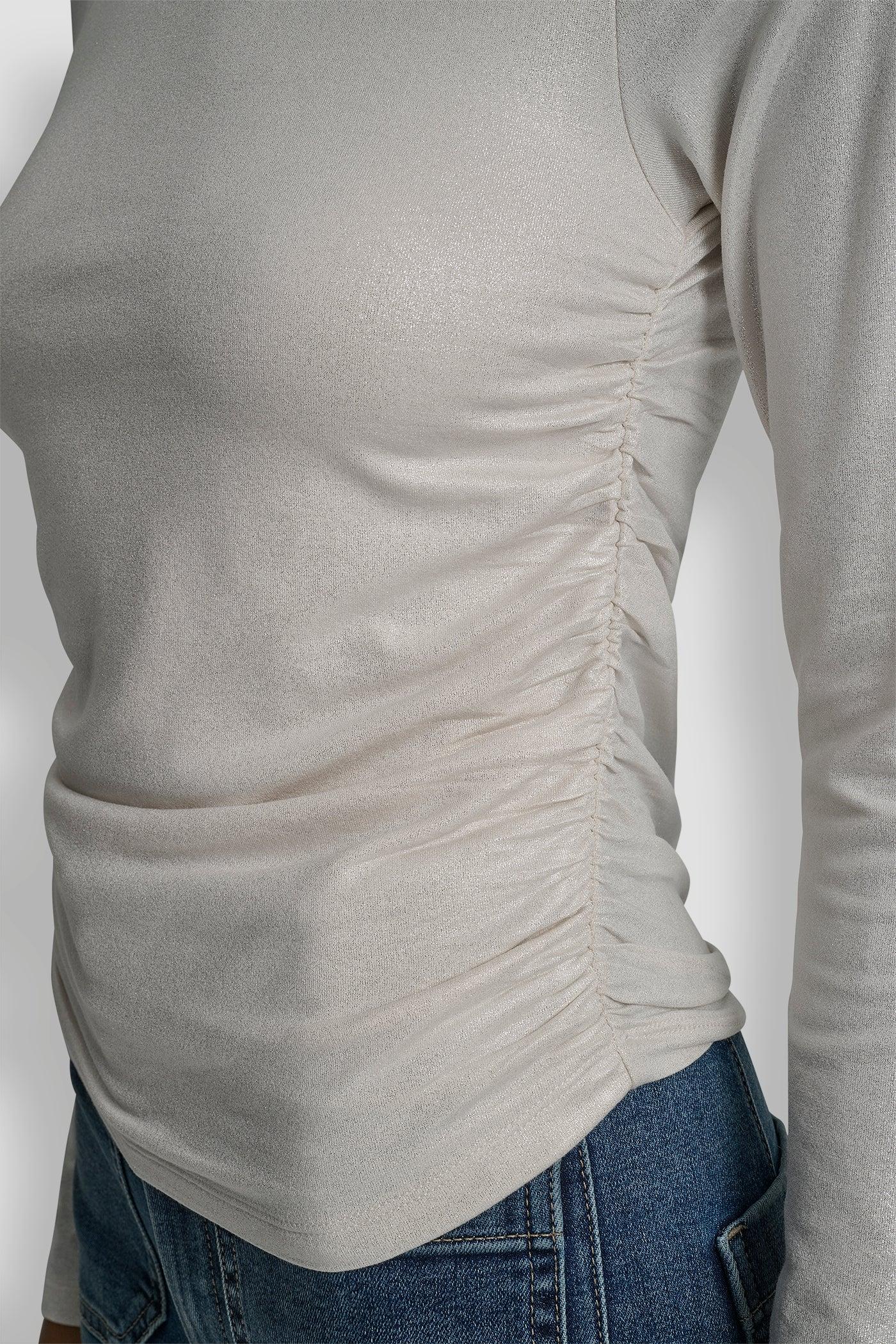 SIDE RUCHED HIGH NECK LONG SLEEVE TOP