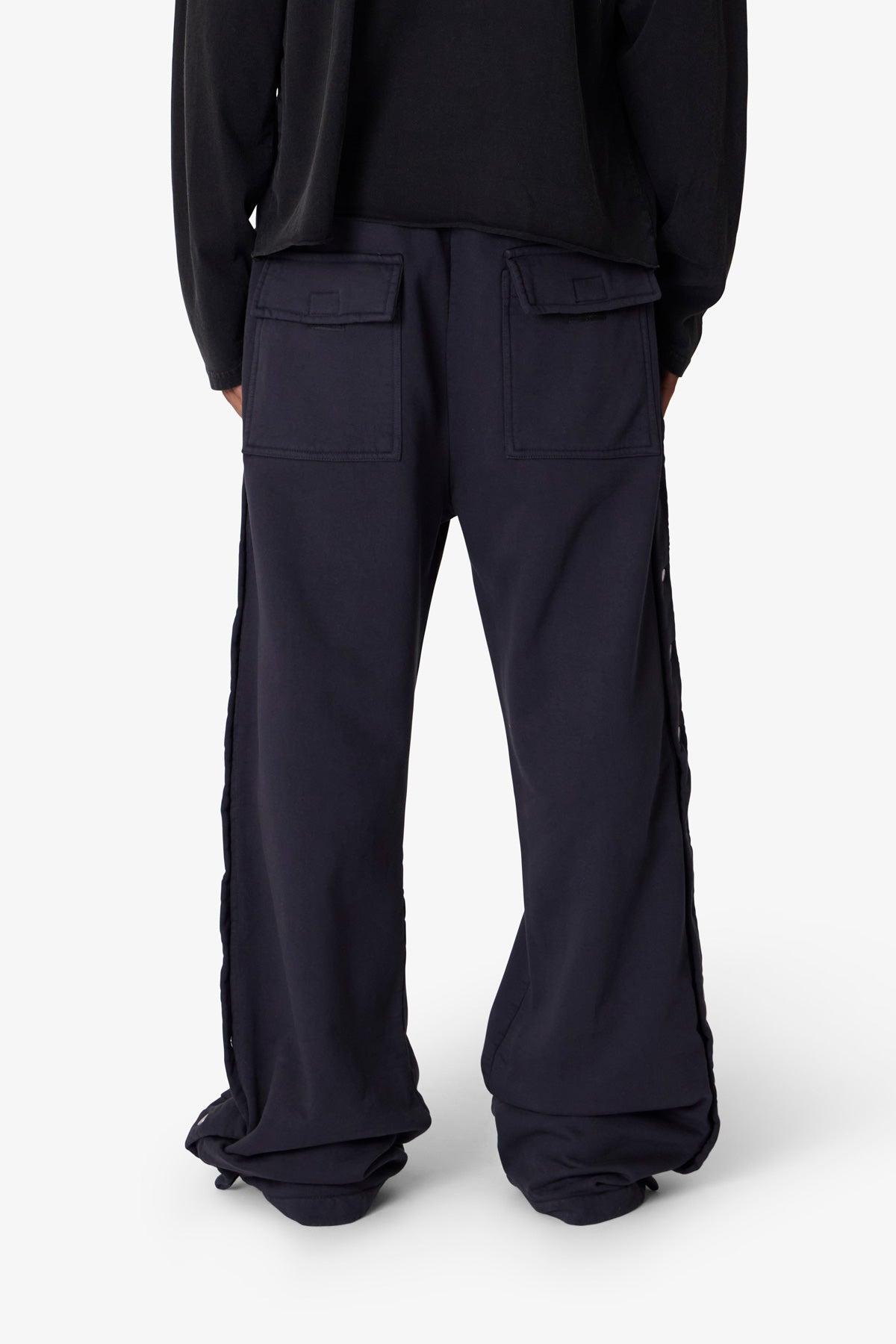 the Side Snap Fleece Pants are designed in an oversized fit, constructed from a custom developed cotton fleece fabric, contrast drawcord, welt pockets at the side seam, and finished with snap details at the outseam. details baggy fit throughout 100% cotton snap details model is 6’1, 140 lbs and wears a size m