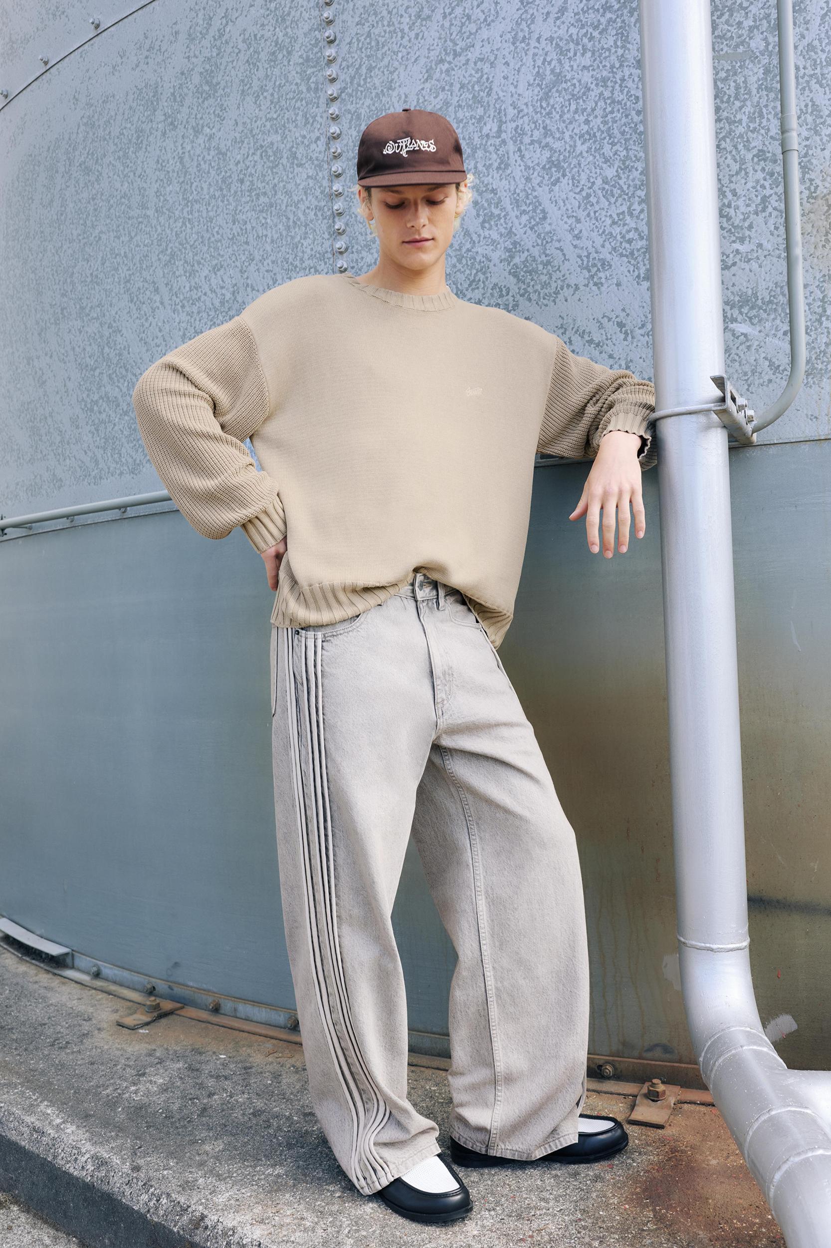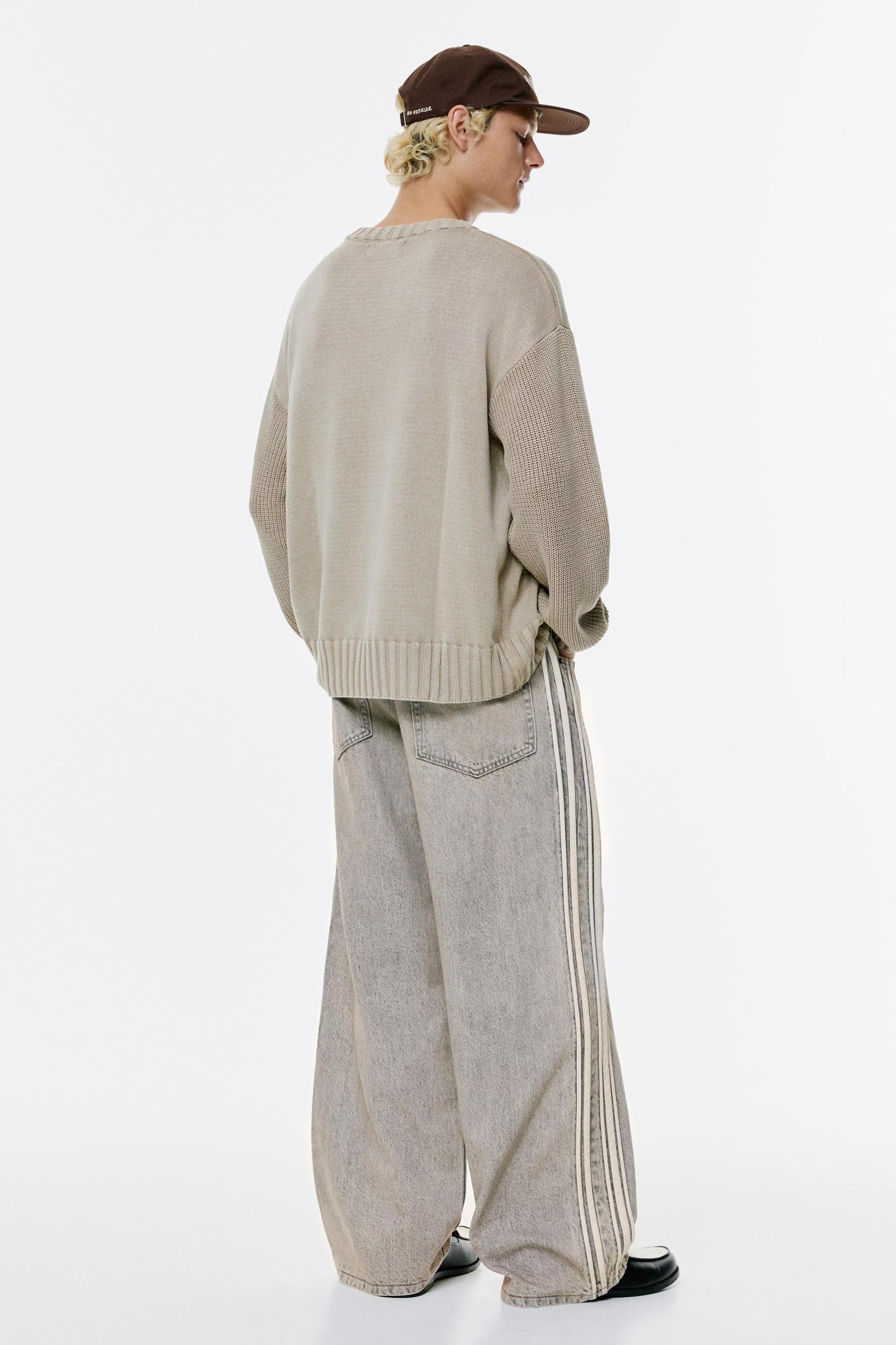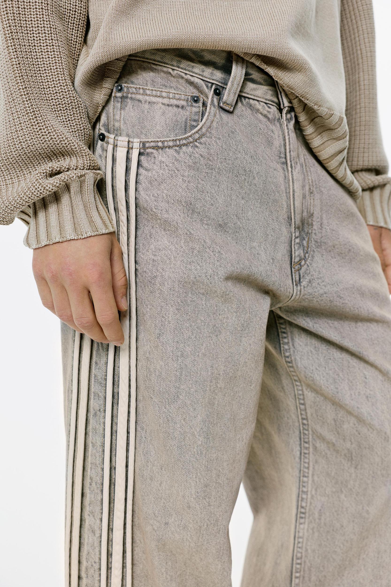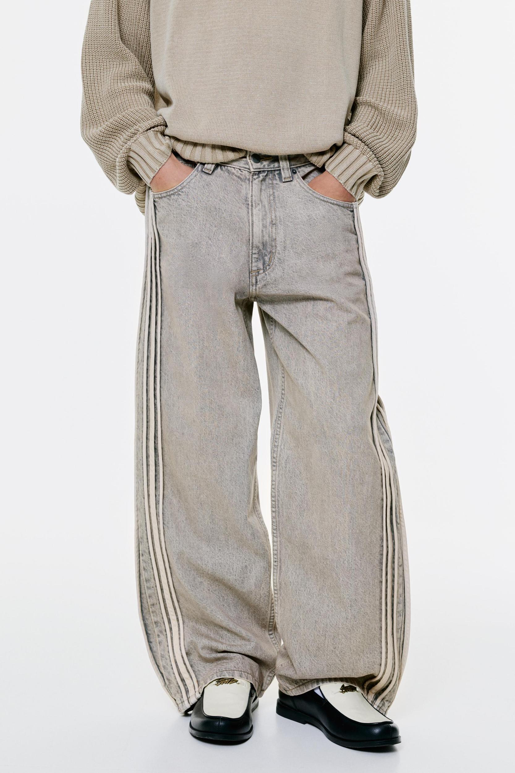 Baggy relaxed fit jeans with side stripes, belt loops, zip fly and top button fastening, and a five-pocket design.