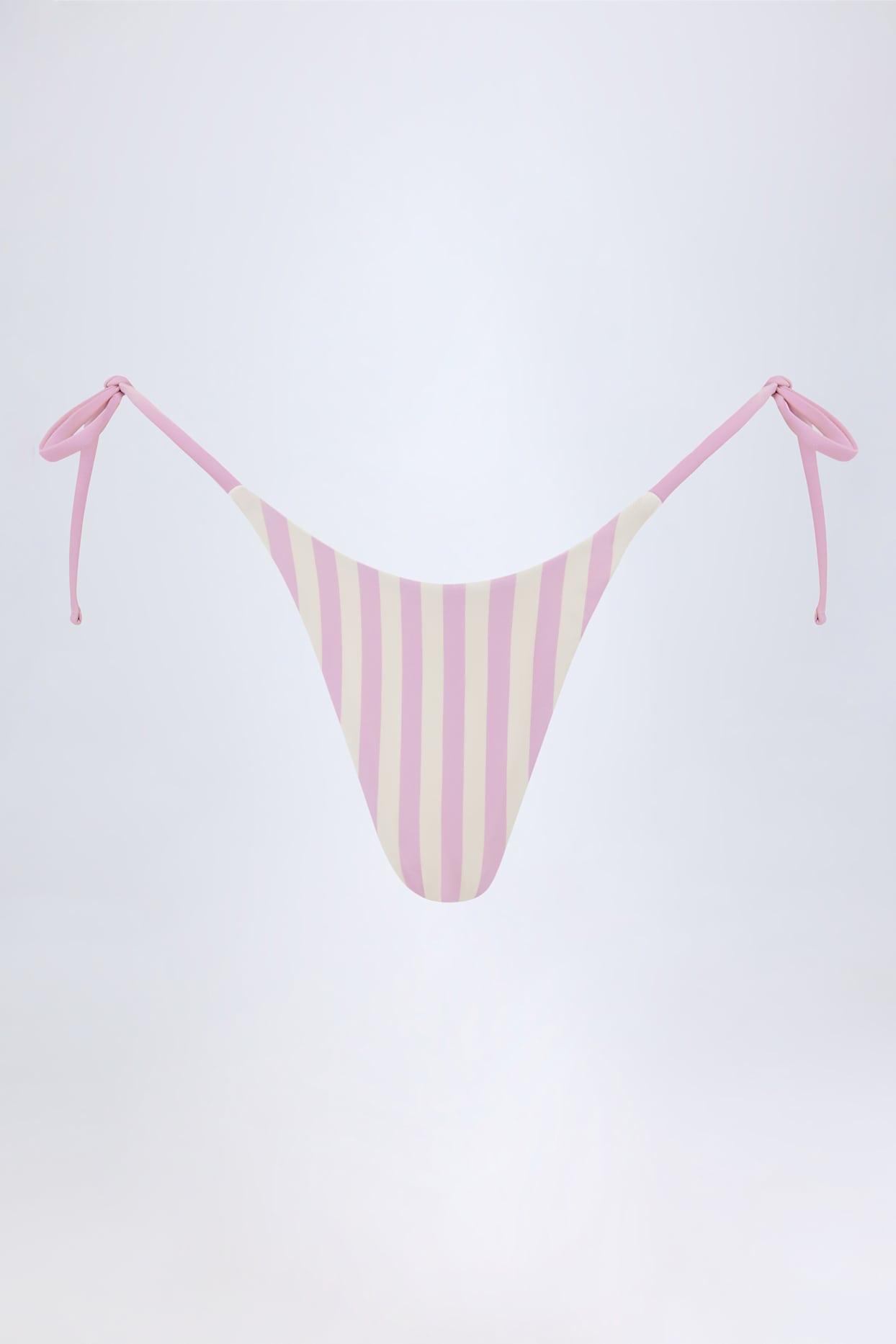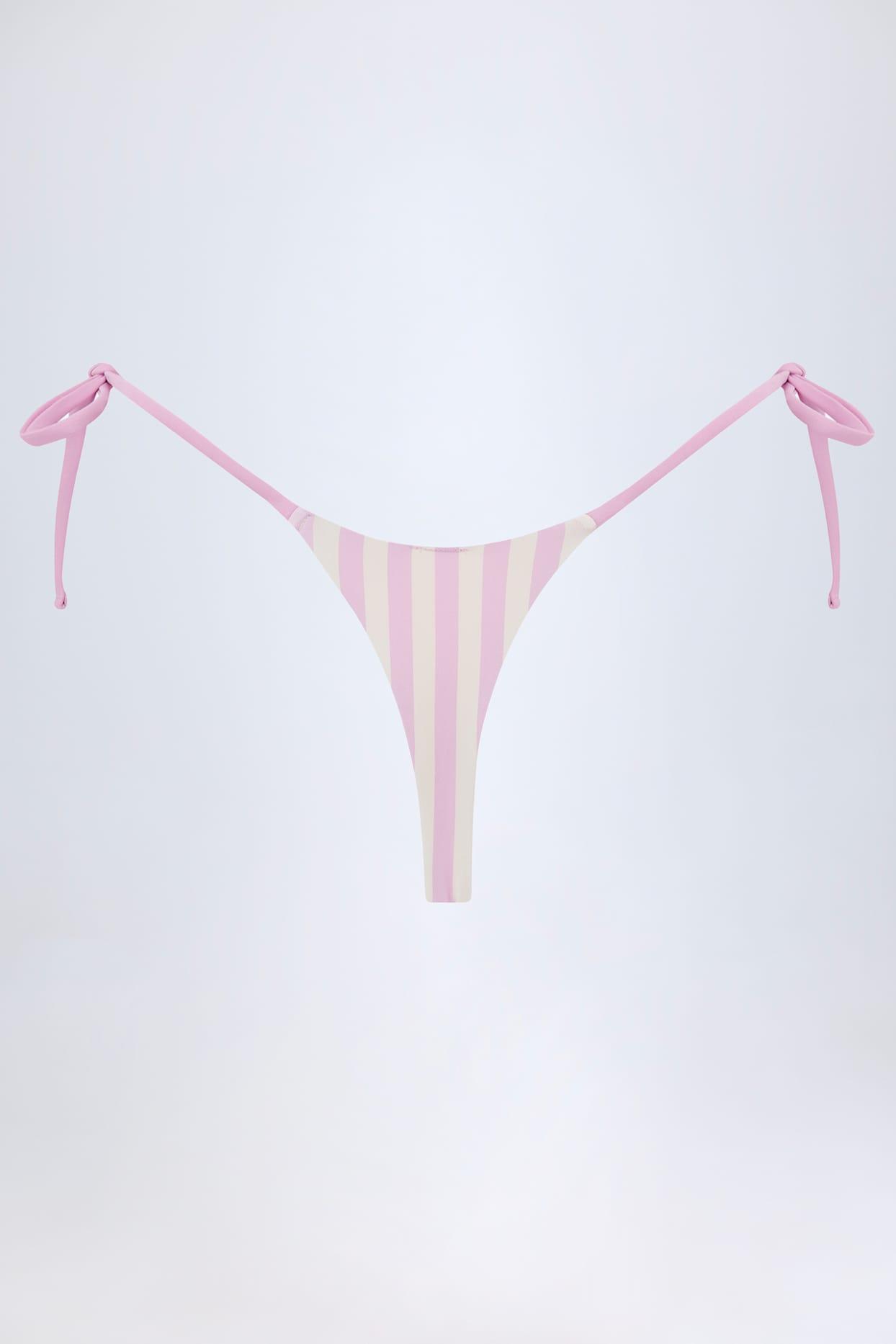 Stripes for the sunshine. Crafted from recycled stretch-swim jersey, the Montalcino bikini bottoms are cut to a high-cut silhouette with thong-back coverage, perfect for minimising tan lines. They’re set on a low-rise waistband and feature adjustable ties at each side for your perfect fit every time.Adjustable side-tie strapsThong back coverageStripe printHigh-cut legTies at sides Standard bikini bottom length, approx. 18.5cm based on a size SProduct code: NS10498