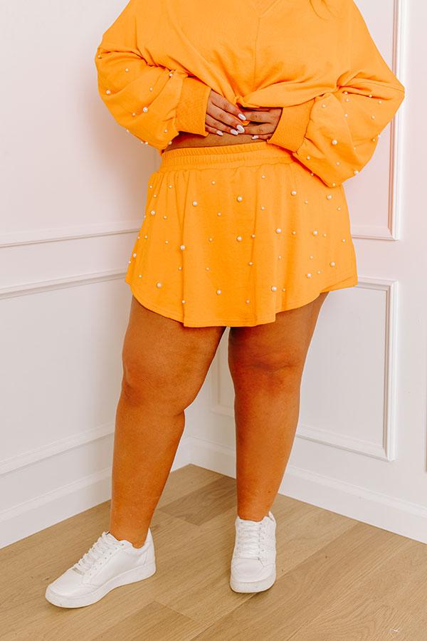 - Dress to impress in this chic faux pearl embellished skort! Effortlessly blending the sophistication of pearls with the casual comfort of a skort, this versatile piece elevates any look. Embrace timeless style with a modern twist with this must-have piece. Show your team spirit with our vibrant clothing collection inspired by the bold colors of popular college football teams like the University of Tennessee Volunteers and the University of Texas Longhorns. - Unlined material with faux pearl embellishment on the front - An elastic waistline - Shorts with a skirt overlay on the front with curved hemline - A relaxed silhouette that ends in straight hemlines - This piece is a perfect game day option for fans of Tennessee, Texas, Oklahoma State, Florida, Auburn, Virginia and more!