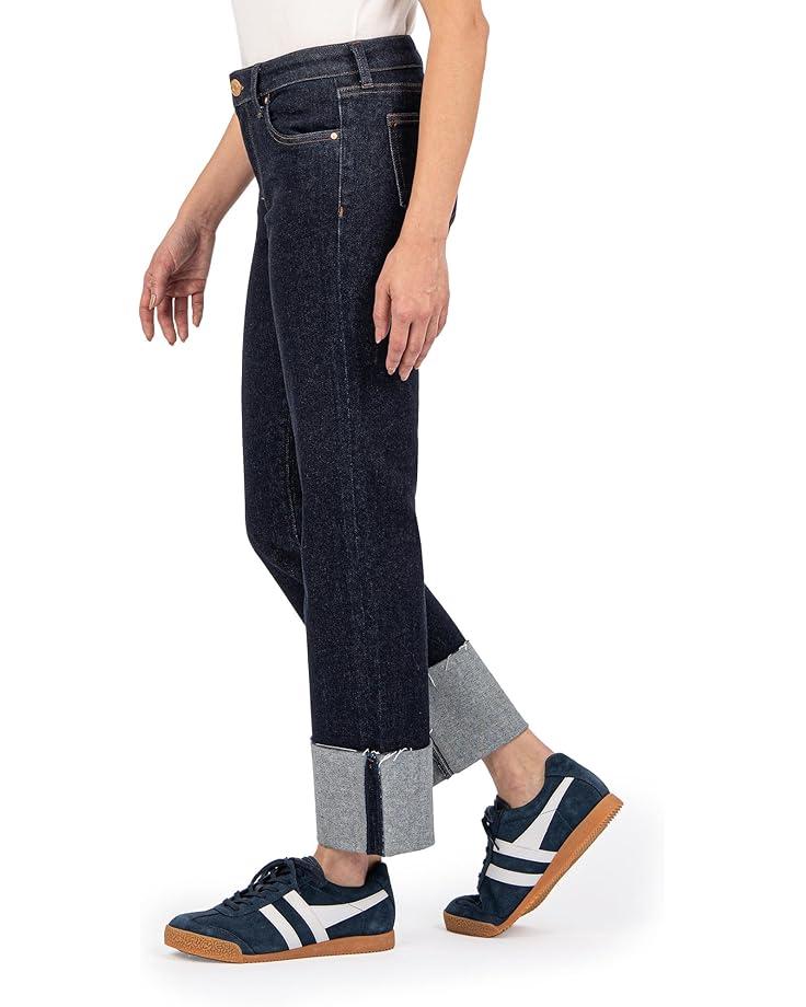 Step up the fashion game by complementing tees and tops with KUT from the Kloth™ Fay High Rise Fab Ab Straight Leg-roll Up Raw Hem Jeans. The pull-on style jeans features a high-rise waist with belt loops, a zip-fly & button closure, a five-pocket design, and a wide-leg style with rolled-up hem.