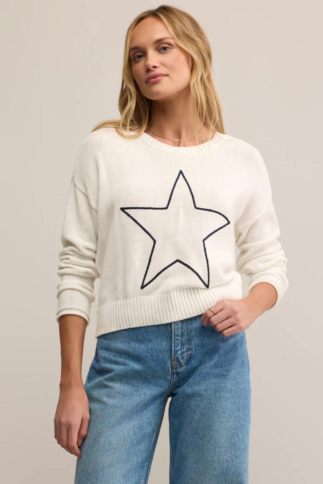 Designed in a soft cotton-blend knit with an embroidered star on the front, this relaxed sweater features a classic crew neckline and dropped shoulder seams. Throw it on over denim alone or layered.