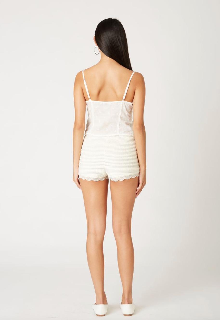 Elevate your wardrobe with the Sienna Shorts, featuring delicate striped lace trim that adds a refined touch to a classic mini silhouette. Crafted for both comfort and style, these shorts offer a sophisticated yet playful look perfect for warm-weather occasions or layering under longer tops. The intricate lace detailing enhances texture and visual interest, making the Sienna Shorts a versatile piece for a polished, expert-curated outfit.