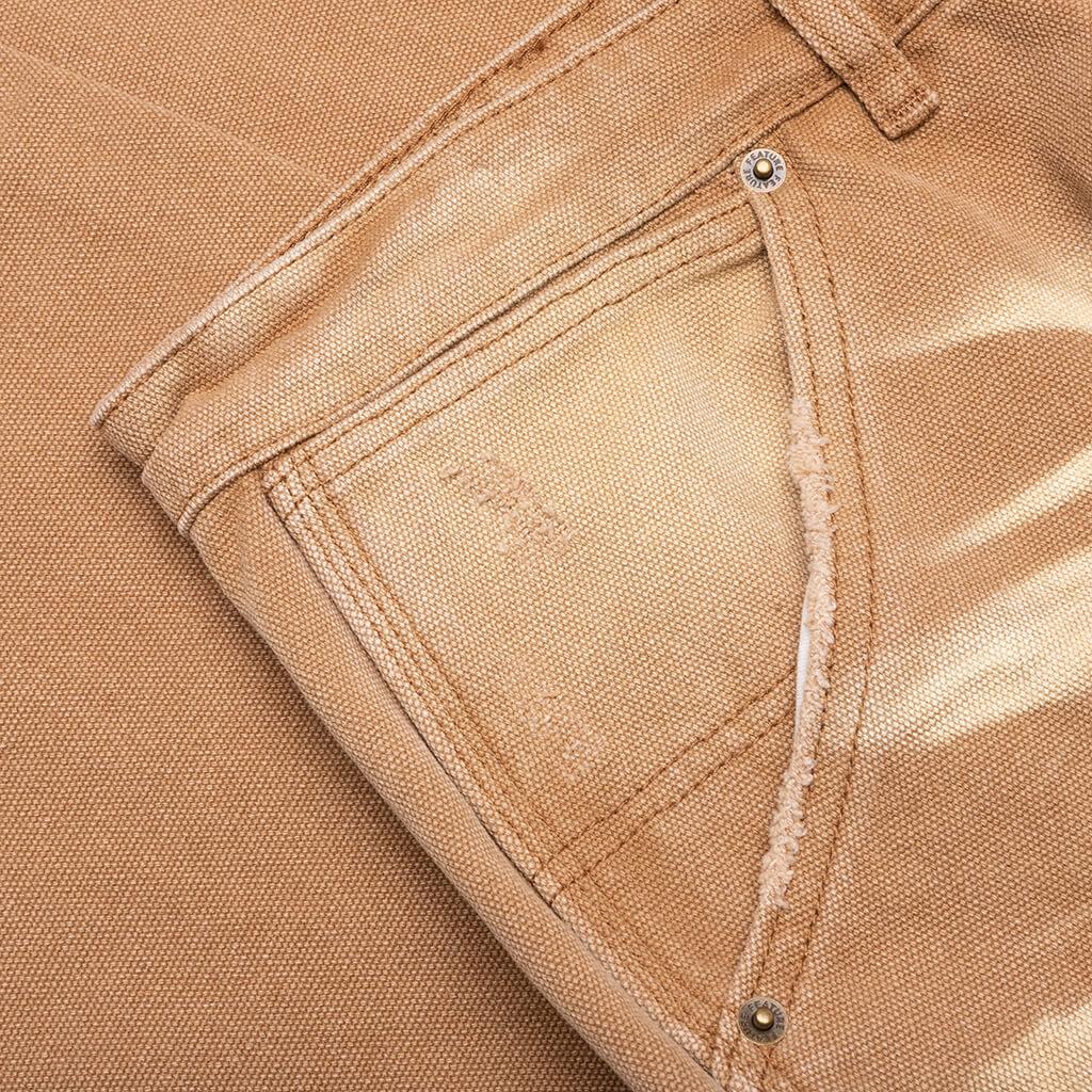 The Sigmund Work Pant in Vintage Brown delivers rugged style and functionality. Crafted from durable cotton canvas, these pants feature a mid-rise waist and a straight-leg fit for a classic look. Distressed knees and double-knee reinforced paneling enhance durability while adding character. Functional details include a bellowed side pocket, an accent hammer strap, and a traditional button fly, making these pants a practical and stylish choice for any task or casual wear. 100% Cotton 14oz Denim Mid-rise Button fly Straight leg Distressed knees Accent hammer strap Bellowed side pocket Double knee reinforced paneling Style No: F081324X09