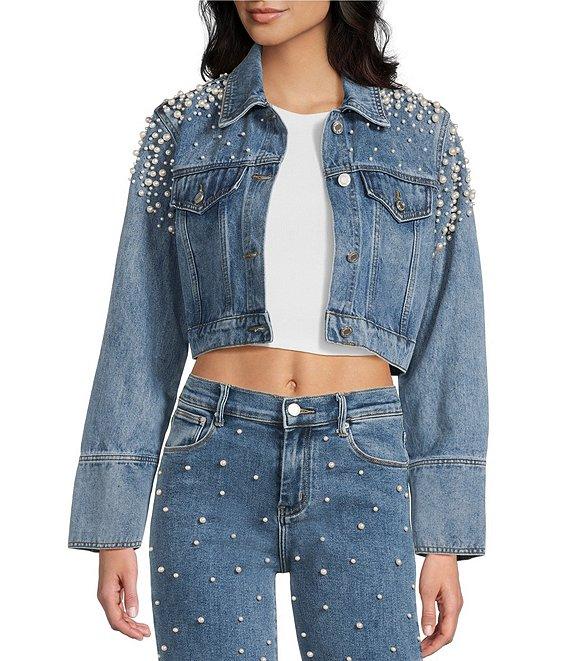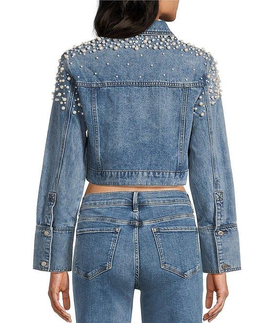 Signature 8 Cropped Pearl Long Sleeve Jean Jacket