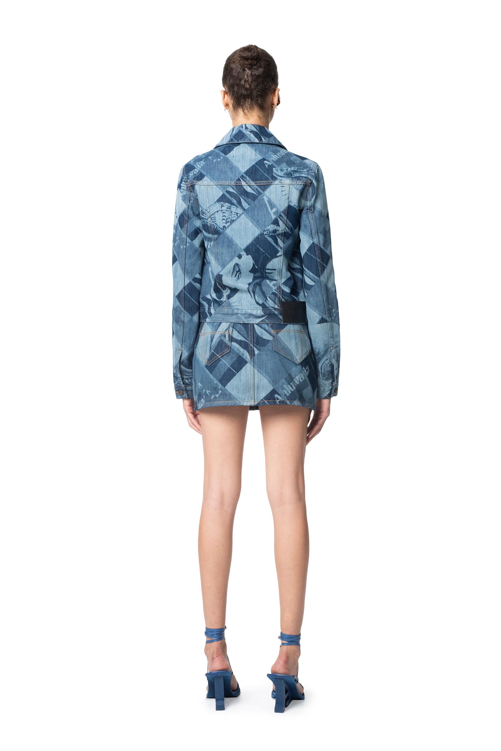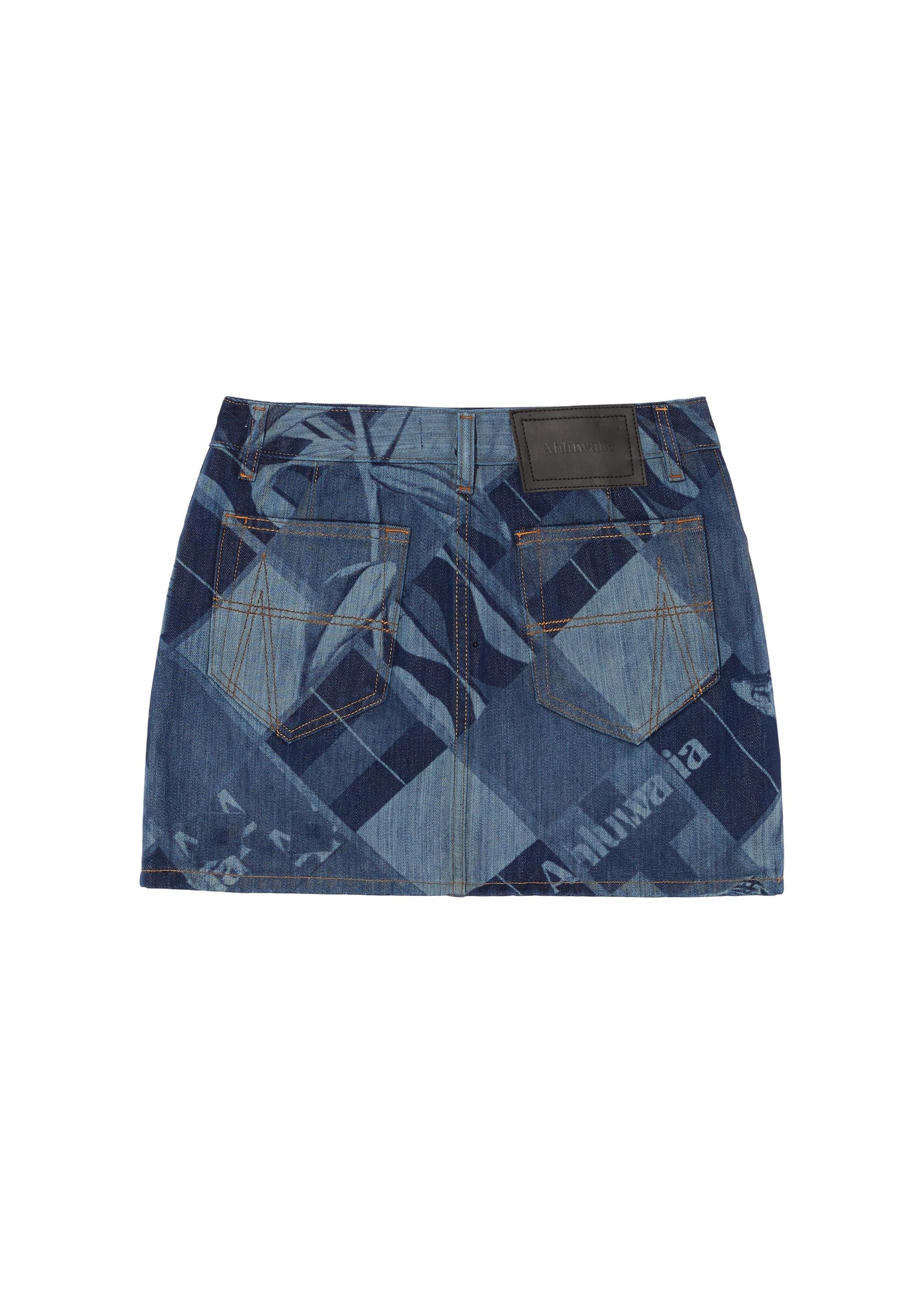 Description: The Signature denim mini skirt is made from recycled denim and laser etched with a custom print inspired by the marginalised artists behind the SS24 collection. This all-over print features a checkered design infused with collaged motifs, intricately layered to create a sense of depth. These motifs draw inspiration from diverse sources, including botanical elements, shells, African masks, and body forms, reflecting a rich tapestry of influences. Sizing: Click here for size guide. For further sizing assistance please contact us on