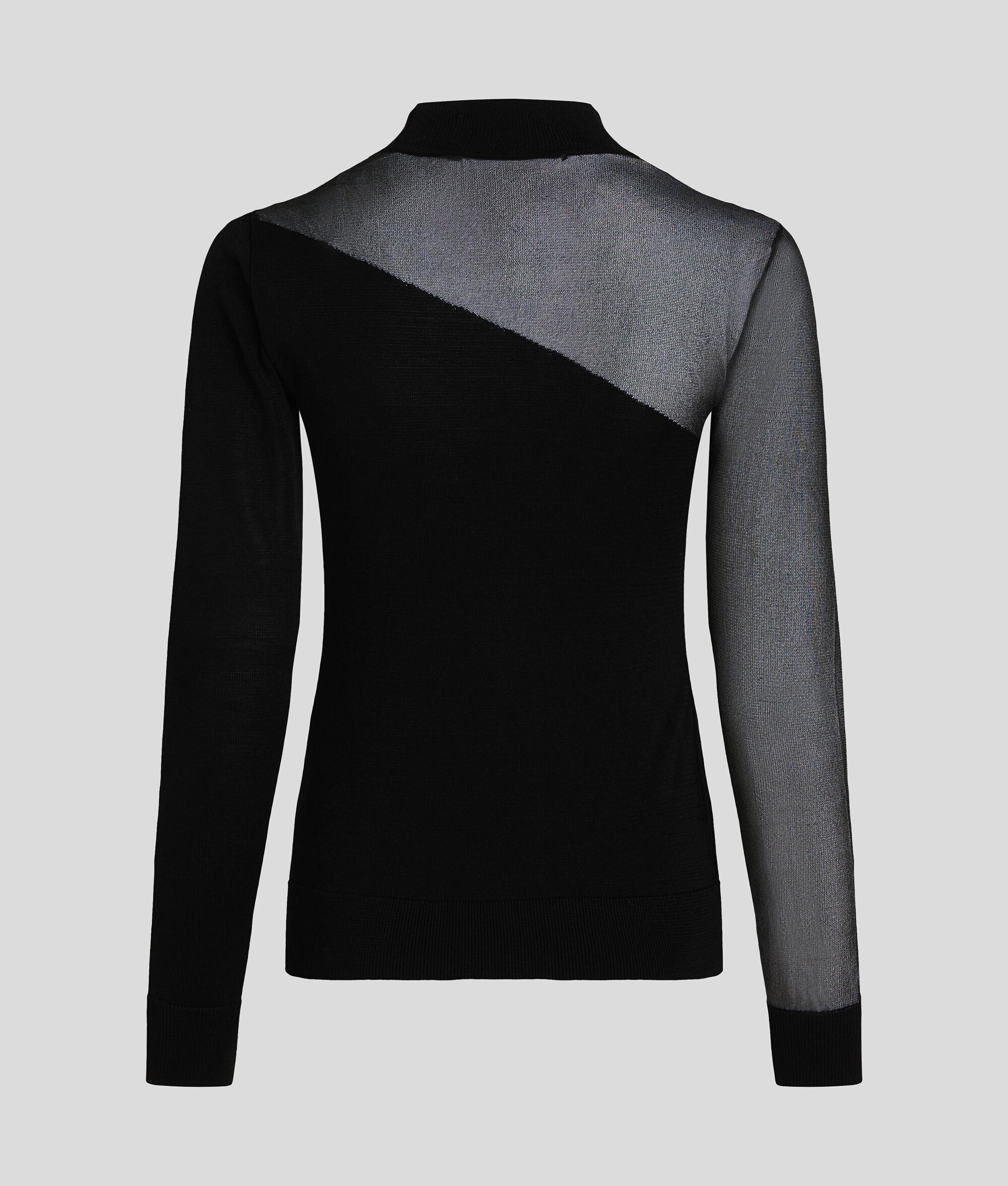 A modern twist on a classic silhouette, this mock neck top showcases a playful mesh panel detail that adds depth and intrigue. Crafted for effortless style, it seamlessly blends comfort with a unique texture, making it a versatile addition to any wardrobe.