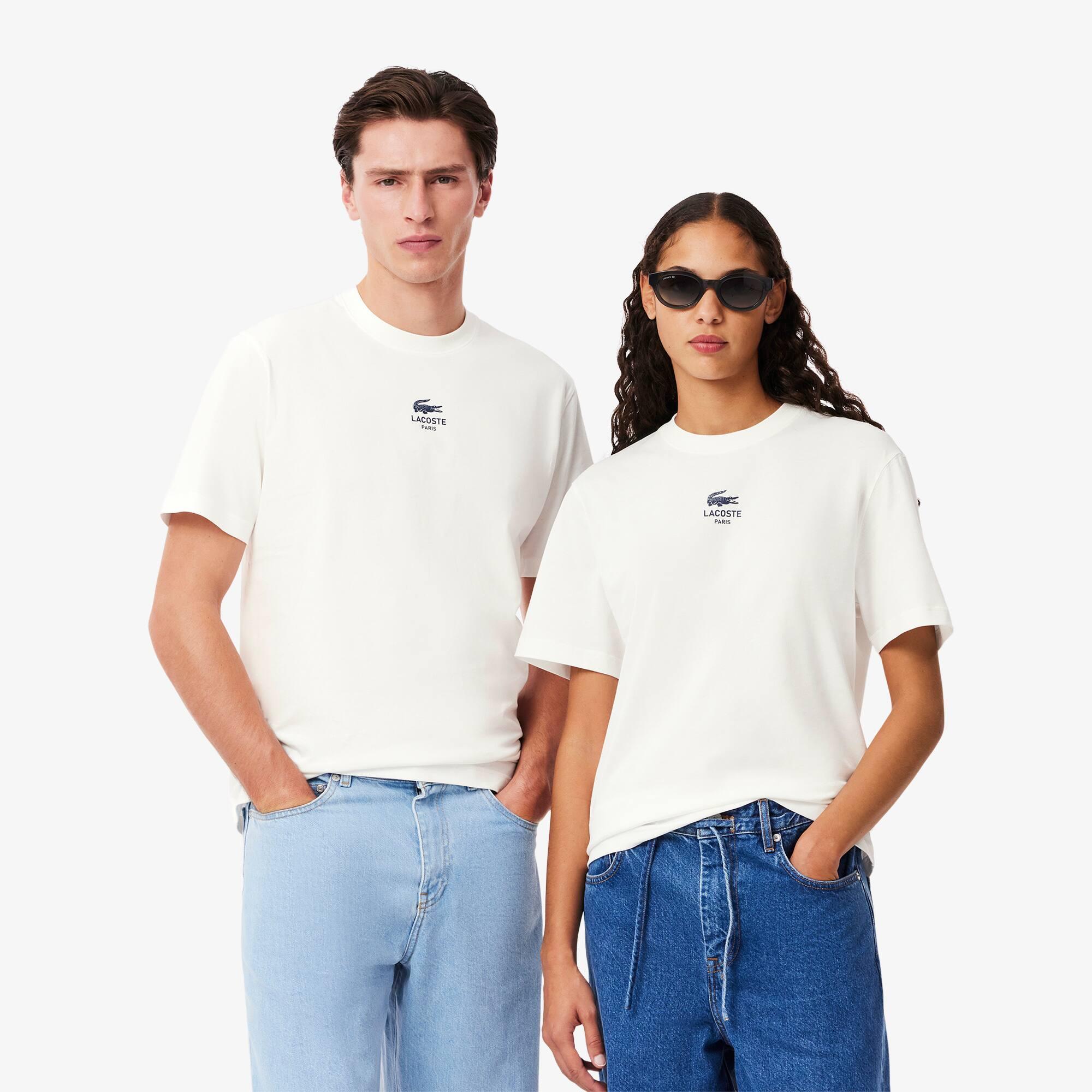 A wardrobe essential in heavy jersey from Lacoste, sportswear creators since 1933. This T-shirt features a classic crew neck and fluid cut, plus intricate embroidered crocodiles on the chest and neck. Fashion meets sportswear for an iconic style.