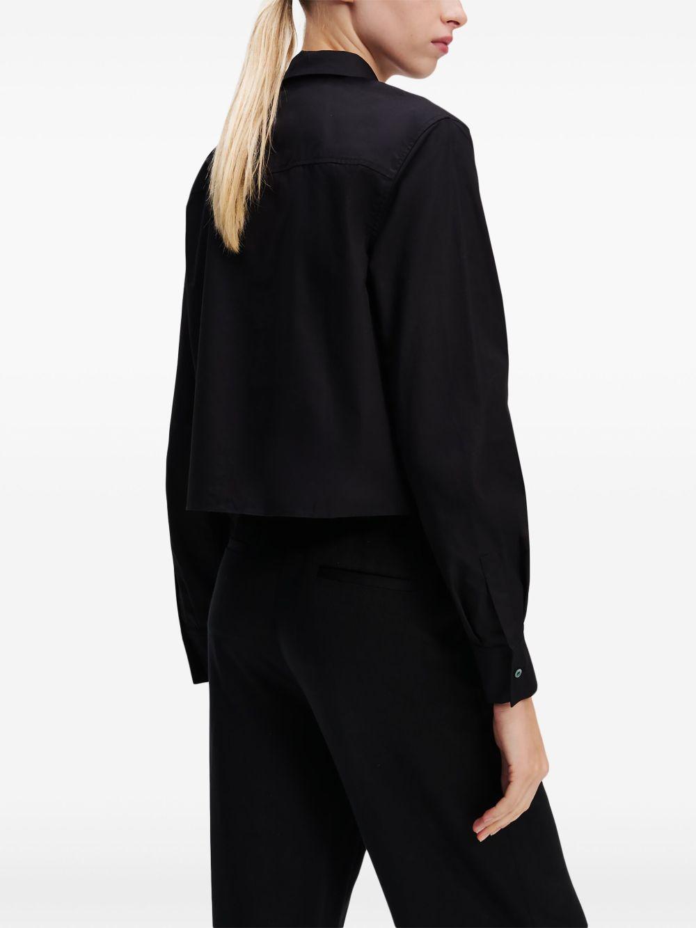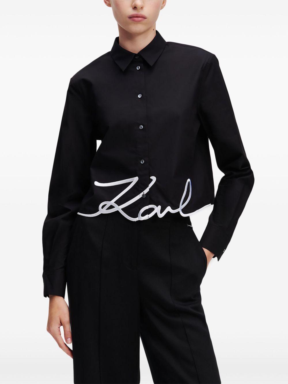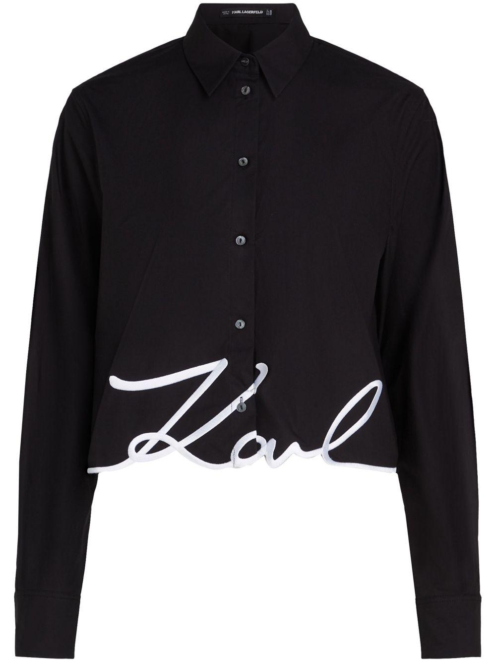 Karl Lagerfeld Signature shirt | Black | black/white | organic cotton | front button fastening | embroidered logo | classic collar | long sleeves | straight hem | Organic Cotton | Shirts | Tops | Clothing | Women