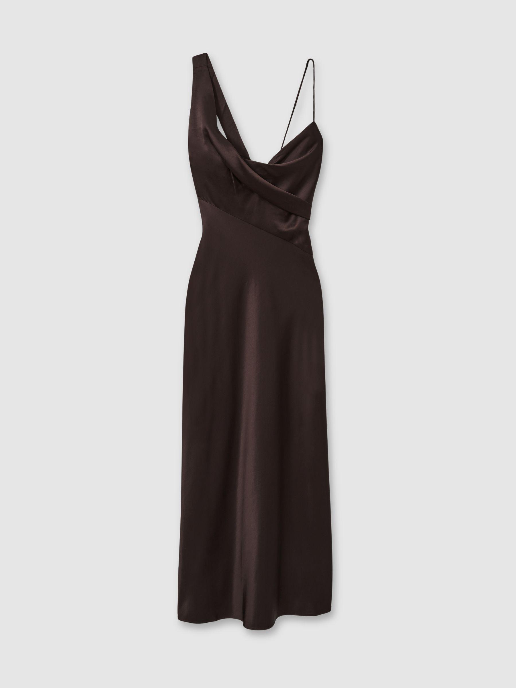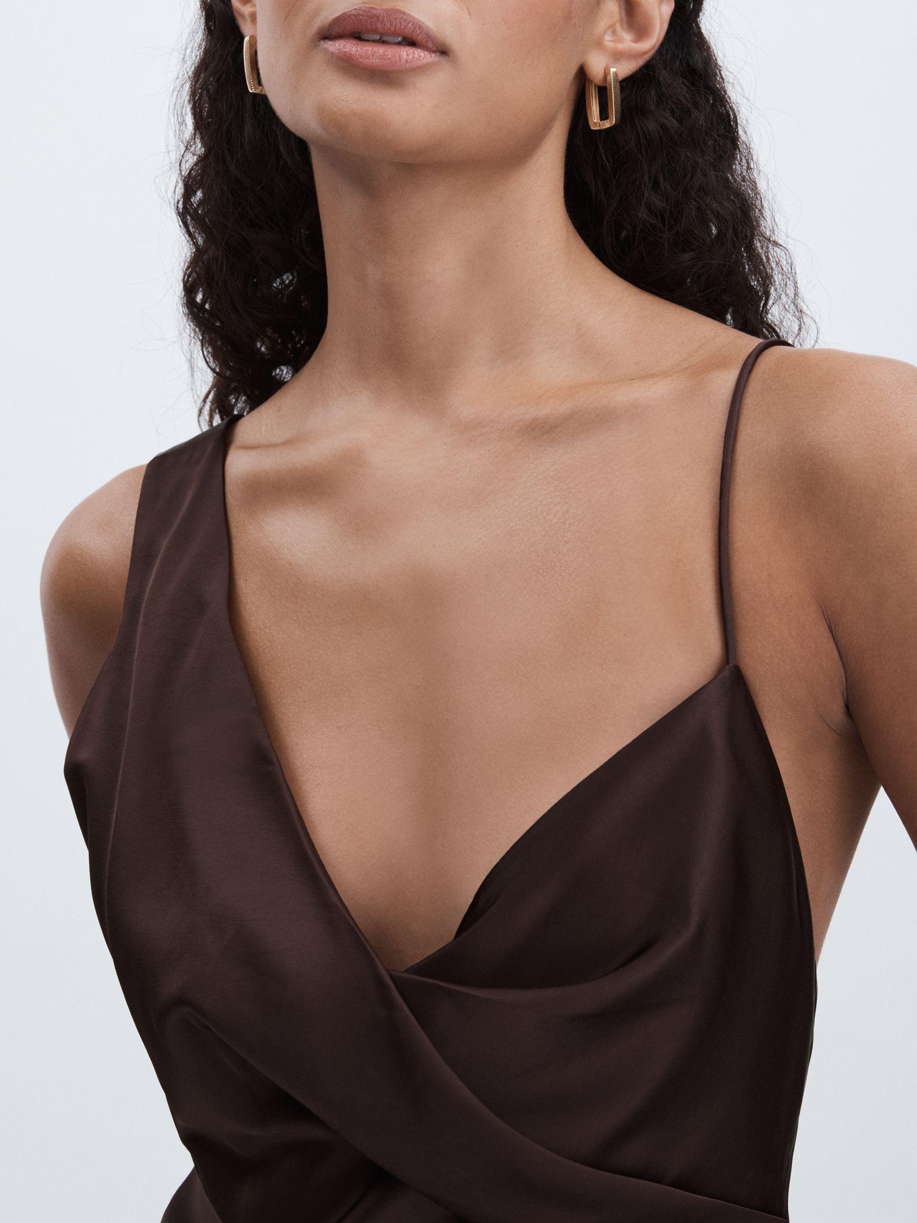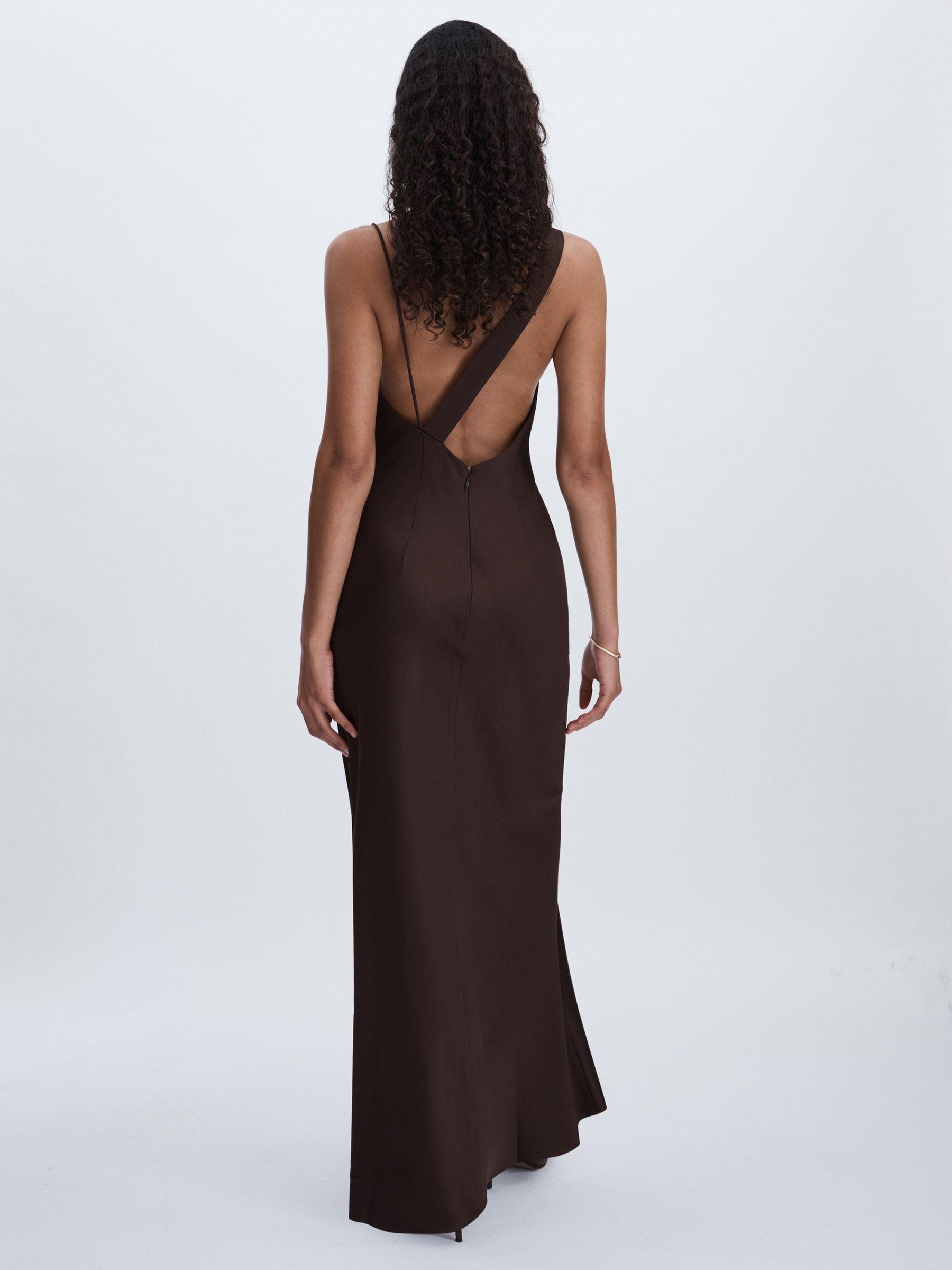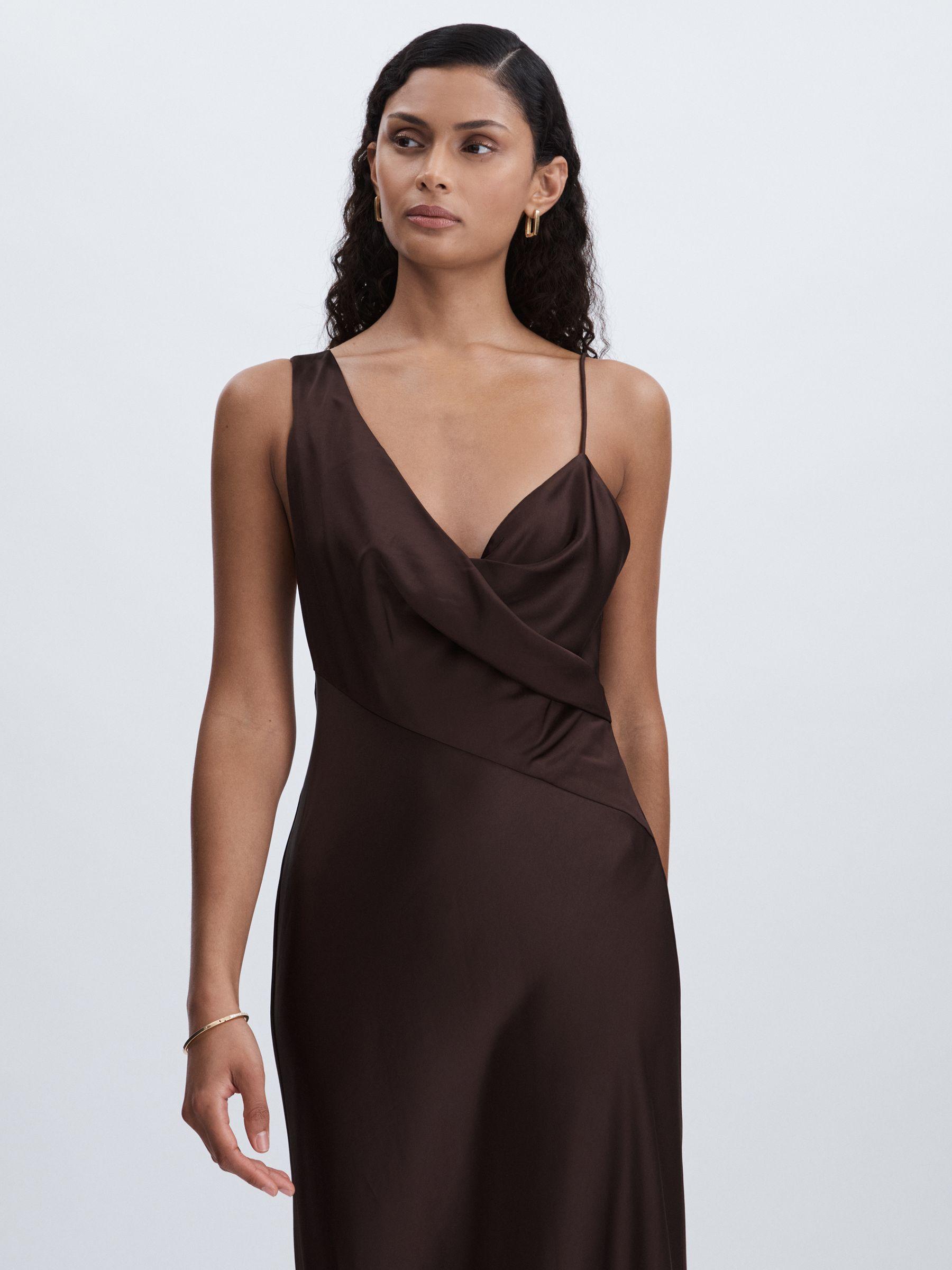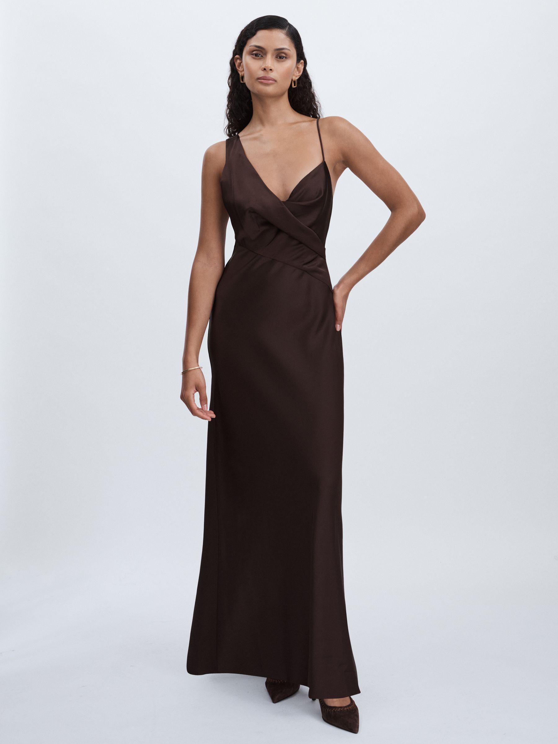 The Adriana dress is crafted from smooth, bias-cut satin that drapes effortlessly. A twisted front bodice with a single wide strap adds a modern, sophisticated touch, while the slightly flared skirt cascades gracefully to the floor. Satin. Deep V-Neck. Draping. Slightly flared skirt. Lined bodice Maxi. Concealed zip to reverse. Significant Other, curated by Reiss, is a self-proclaimed ‘beach-to-bar’ brand, essential for the modern woman.