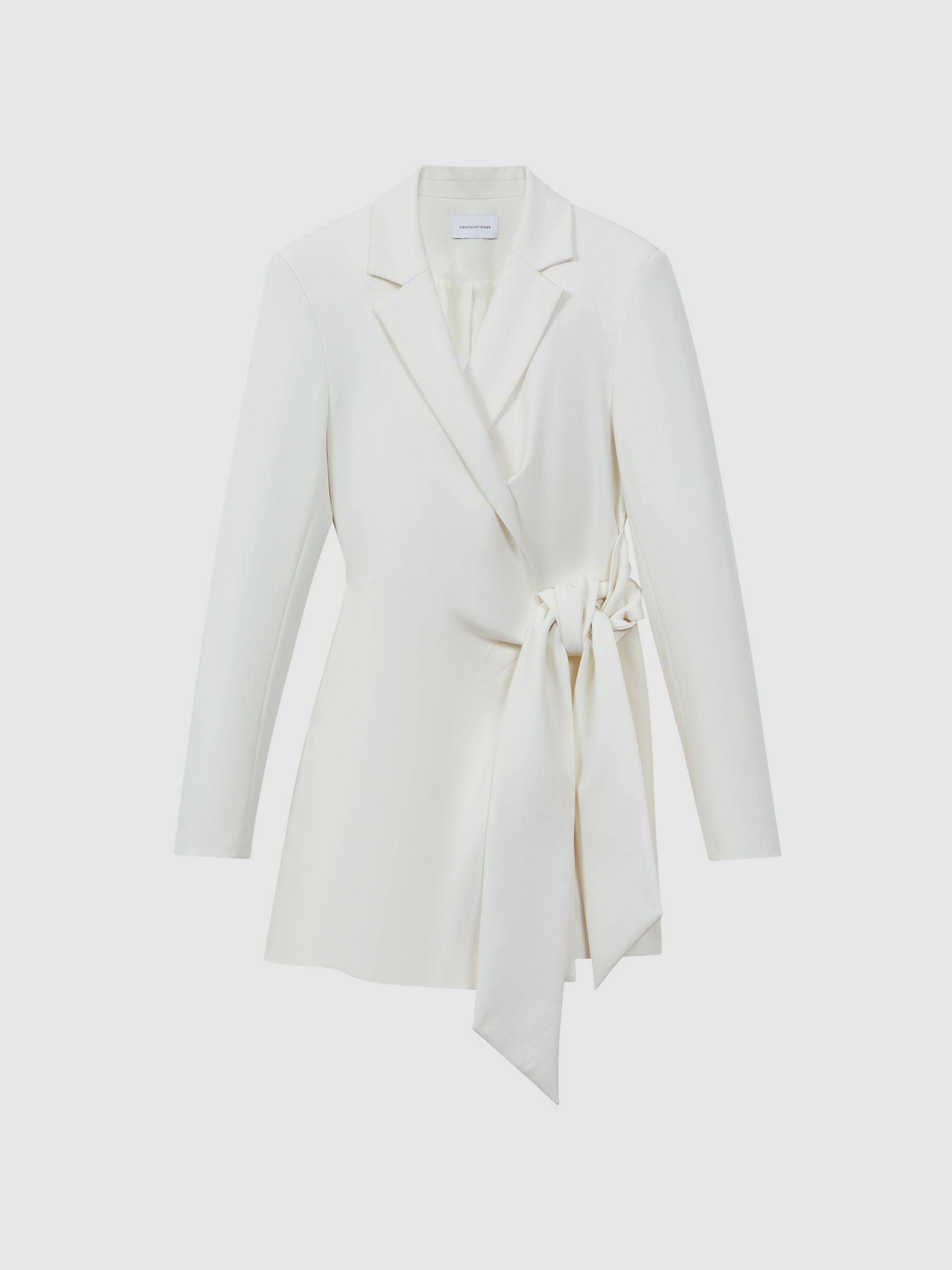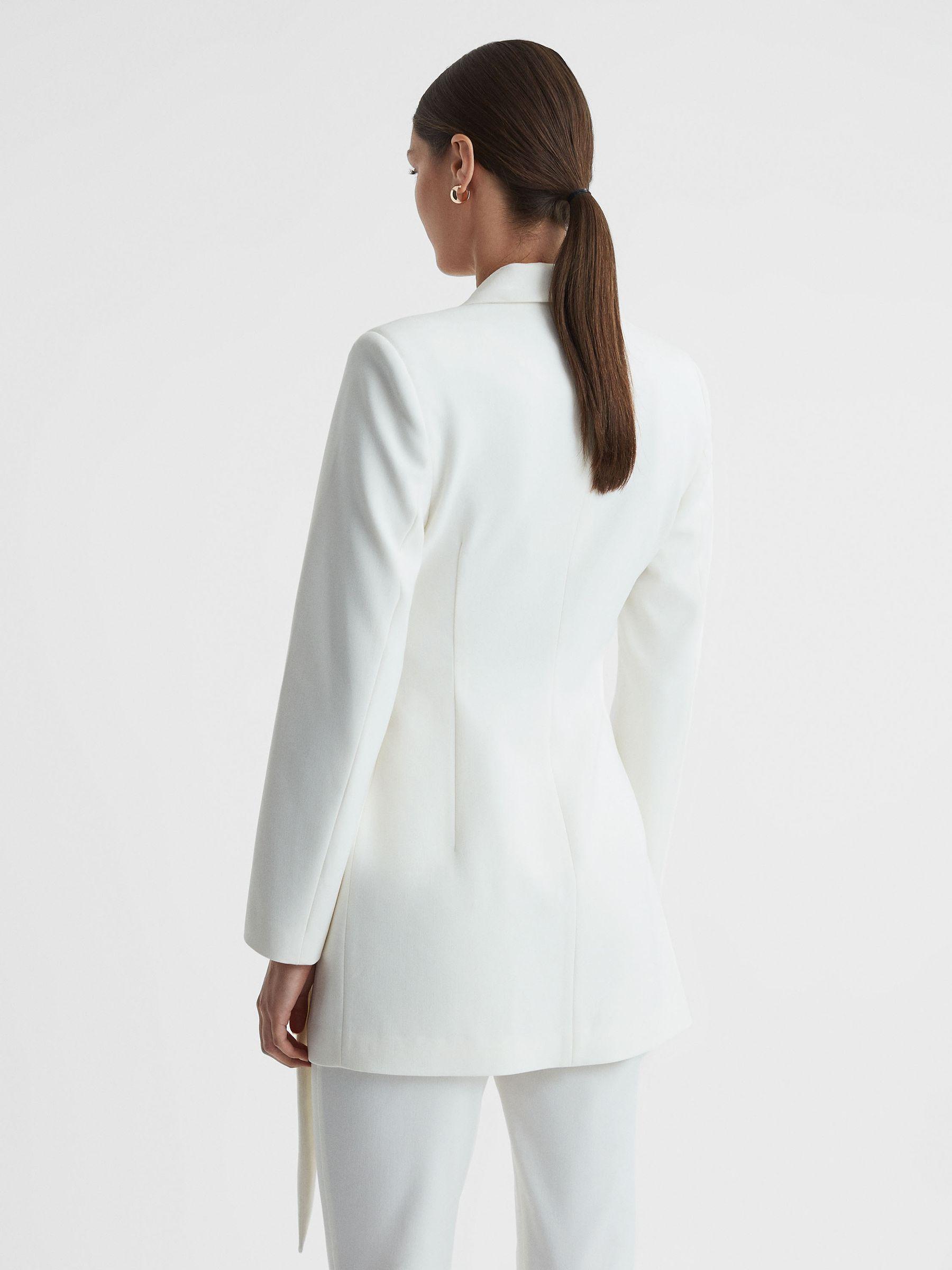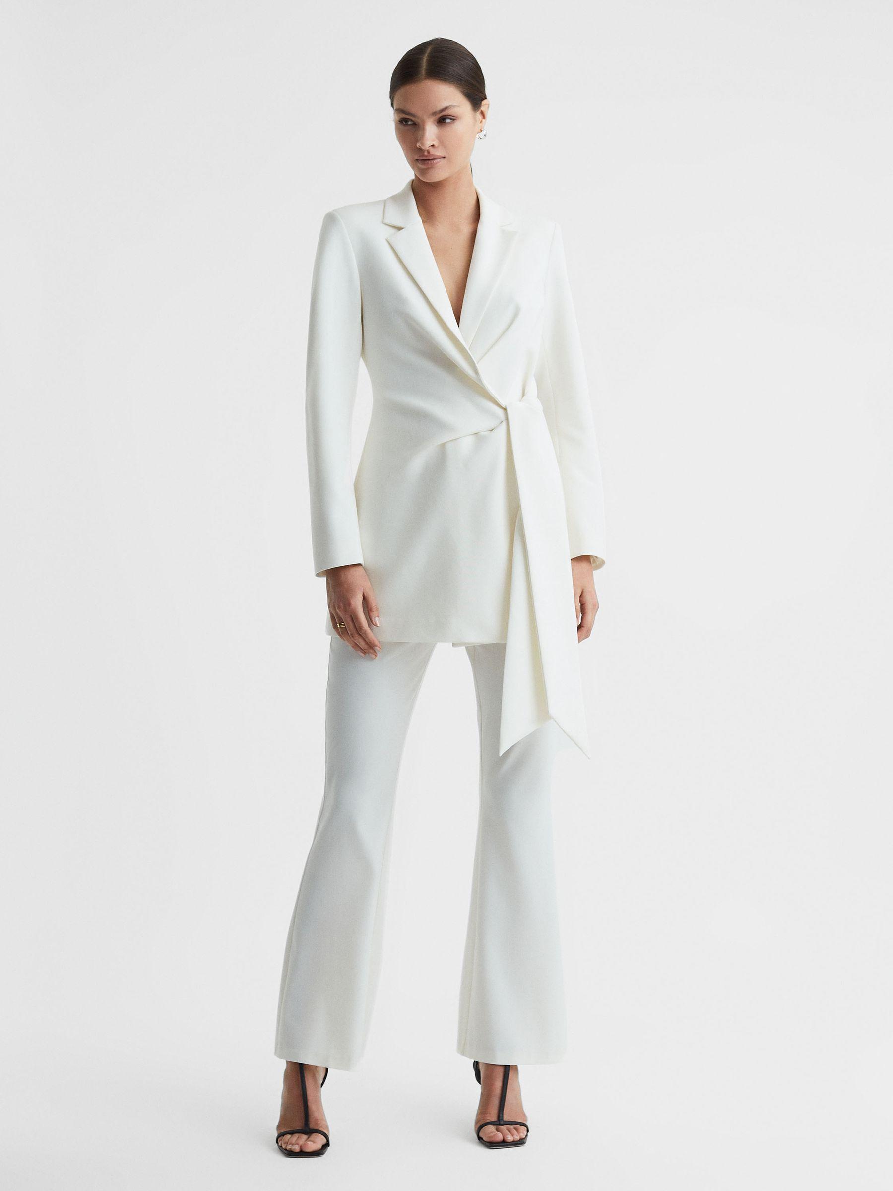 Significant Other, curated by Reiss, is a self-proclaimed ‘beach-to-bar’ brand, essential for the modern woman. Try your own hand at traditional suiting with the cream Nula blazer dress. It’s cut from a stretch-enhanced fabric into a double-breasted wrap design with a side-tie element. A relaxed silhouette contrasts with a mini length for a modern take on femininity. Wrap design Double breasted Self-tie waist element Long sleeves Padded shoulders Lined Mini length Relaxed fit