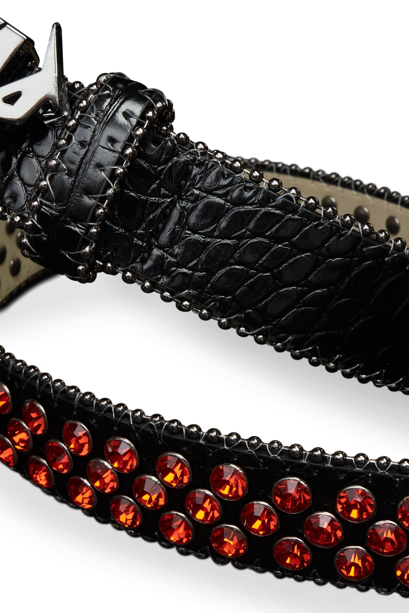 An elevated faux leather strap belt for men in black. Designed with custom embellishments and a stainless steel RSO buckle for a must-cop accessory. Faux leather Studded detailing Stainless steel logo buckle Belt Length: 42.5 in. Belt Buckle: 3.75 x 1.5 in.