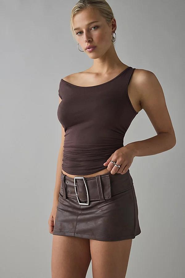 On-trend Silence + Noise skort in a micro mini length. Designed in a soft-touch faux suede with built-in shorts in a curve-hugging fit featuring a wide belt and buckle detail to make it special. Only at Urban Outfitters. Features Silence + Noise Kate faux suede belted micro mini skort Faux leather mini skirt Soft-touch faux suede Low-rise waistline Wide belt and buckle detail with belt loops Built-in shorts Slim curve-hugging fit Micro mini length Shorts lining Zip closure UO exclusive Content +