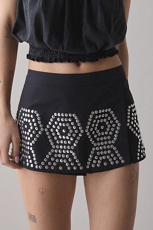 Boho Silence + Noise micro skort made special with a bold, studded design. Features a low-rise waistline, wrap-front overskirt and built-in shorts for a playful finish. Only at Urban Outfitters. Features Silence + Noise Sky Festival studded micro skort Low-rise micro skort Cotton woven Studded embellished pattern Low-rise waistline Wrap-front overskirt Slit hem Built-in shorts Slim fit Micro length Shorts lining Zip closure UO exclusive Content + Care 100% Cotton Machine wash Imported Size + Fit Model in Black is 59 and wearing size Small Measurements taken from size Medium Length: 10 Silence + Noise Sky Festival Studded Micro Skort in Black, Womens at Urban Outfitters