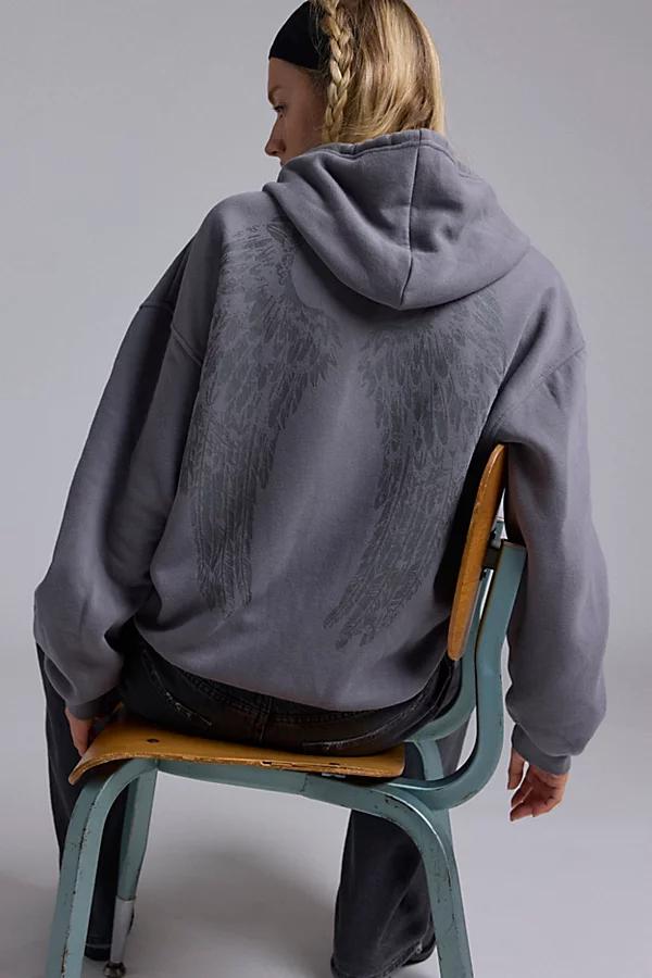 Silence + Noise zip-up hoodie sweatshirt in an oversized, slouchy fit topped with Y2K-inspired wings graphics. Designed in a soft, fleeced knit featuring a crew neckline with hood & string details, drop shoulder long sleeves and front pockets. Exclusively at Urban Outfitters. Features Silence + Noise Wings graphic oversized zip-up hoodie sweatshirt Slouchy graphic hoodie sweatshirt Soft fleeced knit Ribbed knit trim throughout Crew neckline with hood & string details Drop shoulder balloon sleeves Graphic at the chest Zip-front with front hand pockets Wings graphic across the back Relaxed, oversized fit Tunic length Zip closure UO exclusive Content + Care 100% Cotton Machine wash Imported Size + Fit Model in Grey is 58 and wearing size Small Measurements taken from size Small Chest: 38 Length: 29 Silence + Noise Wings Graphic Oversized Zip-Up Hoodie Sweatshirt in Light Blue, Womens at Urban Outfitters