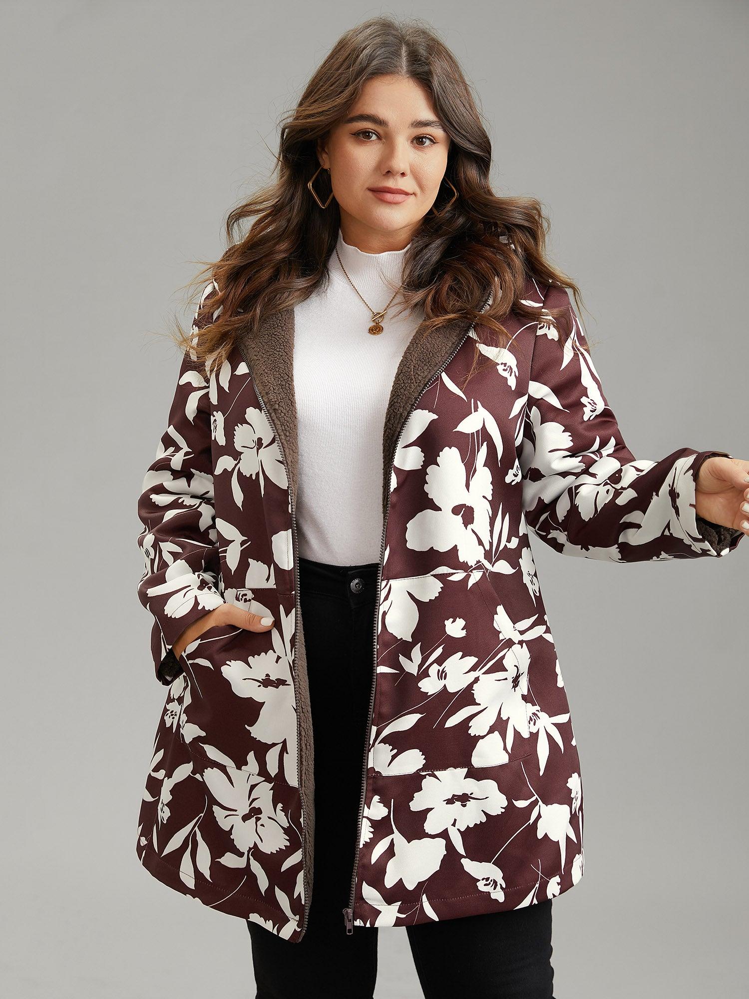Shop Silhouette Floral Print Fuzzy Zipper Hooded Coat now and redefine your style with confidence at BloomChic. Tailored for mid and plus-size women. This trendy Outerwear Women, sizes 10-30. Season:Winter;Color:Scarlet;Style:Casual;Pattern Type:Silhouette Floral Print;Details:Pocket, Zipper, Contrast, Printed, Lined;Pocket:It is perfectly sized to carry a phone.;Belt:No-belt;Closure Type:Zipper;Lining:Lining