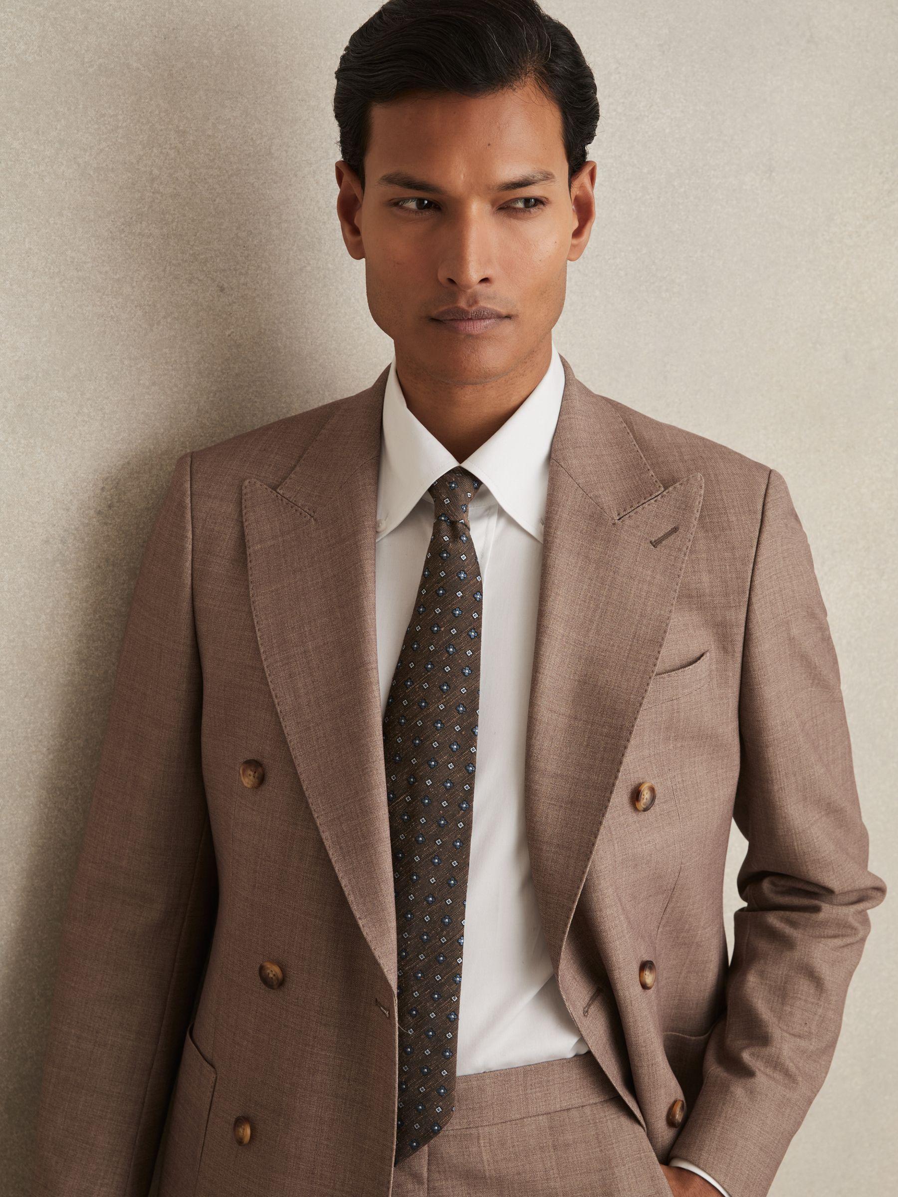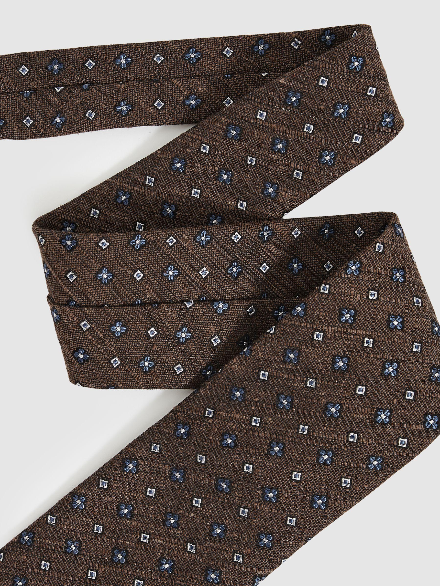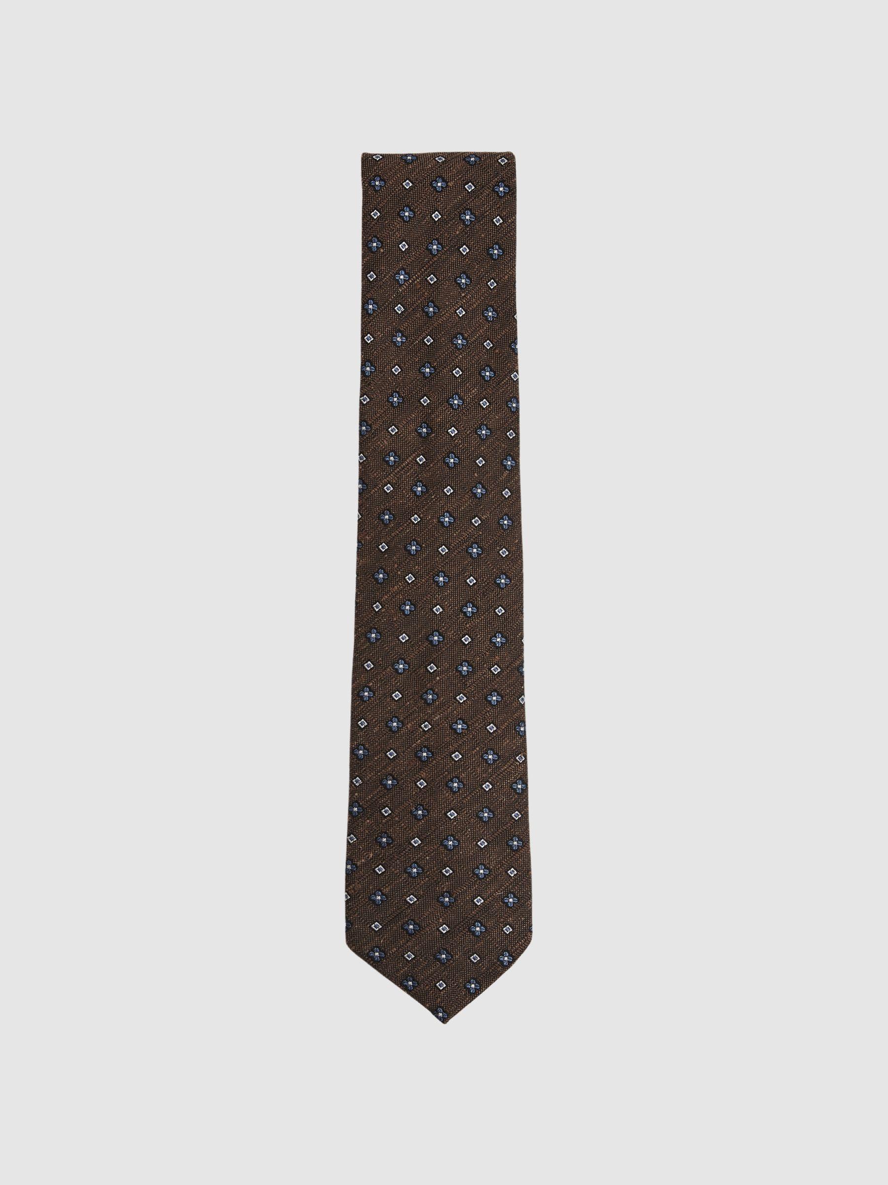 Silk-Blend Mini-Floral Tie in Tobacco Brown