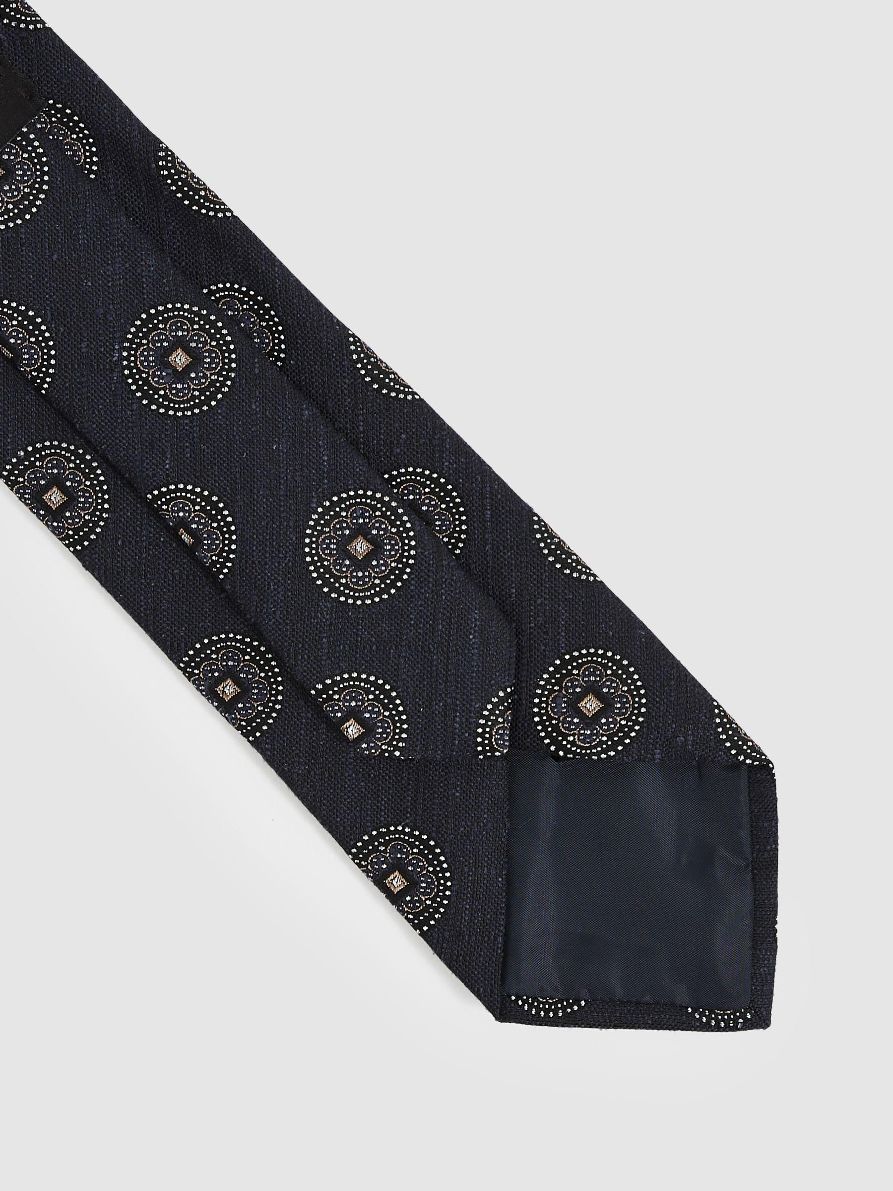 Silk Blend Tie with Medallion Pattern in Navy