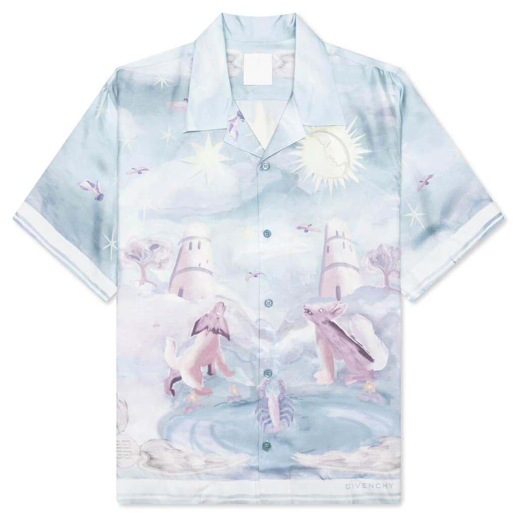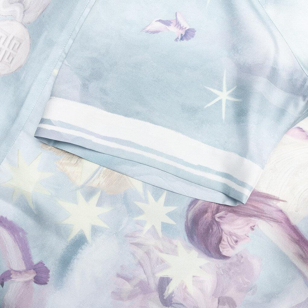 The Silk Boxy Fit Printed Shirt in Multicolored offers a luxurious and artistic touch to your wardrobe. Made from silk, this shirt features a laid-back Hawaiian collar and a bold tarot print for a striking visual appeal. The small GIVENCHY signature is printed on the lower front, adding a refined detail. With a button closure, side slits, and a boxy fit, this shirt combines elegance with relaxed comfort, perfect for making a statement. 100% Silk Hawaiian collar. Tarot print. Small GIVENCHY signature printed on the lower front. Button closure. Small slits on the sides. Boxy fit. Style No: BM611015N0960
