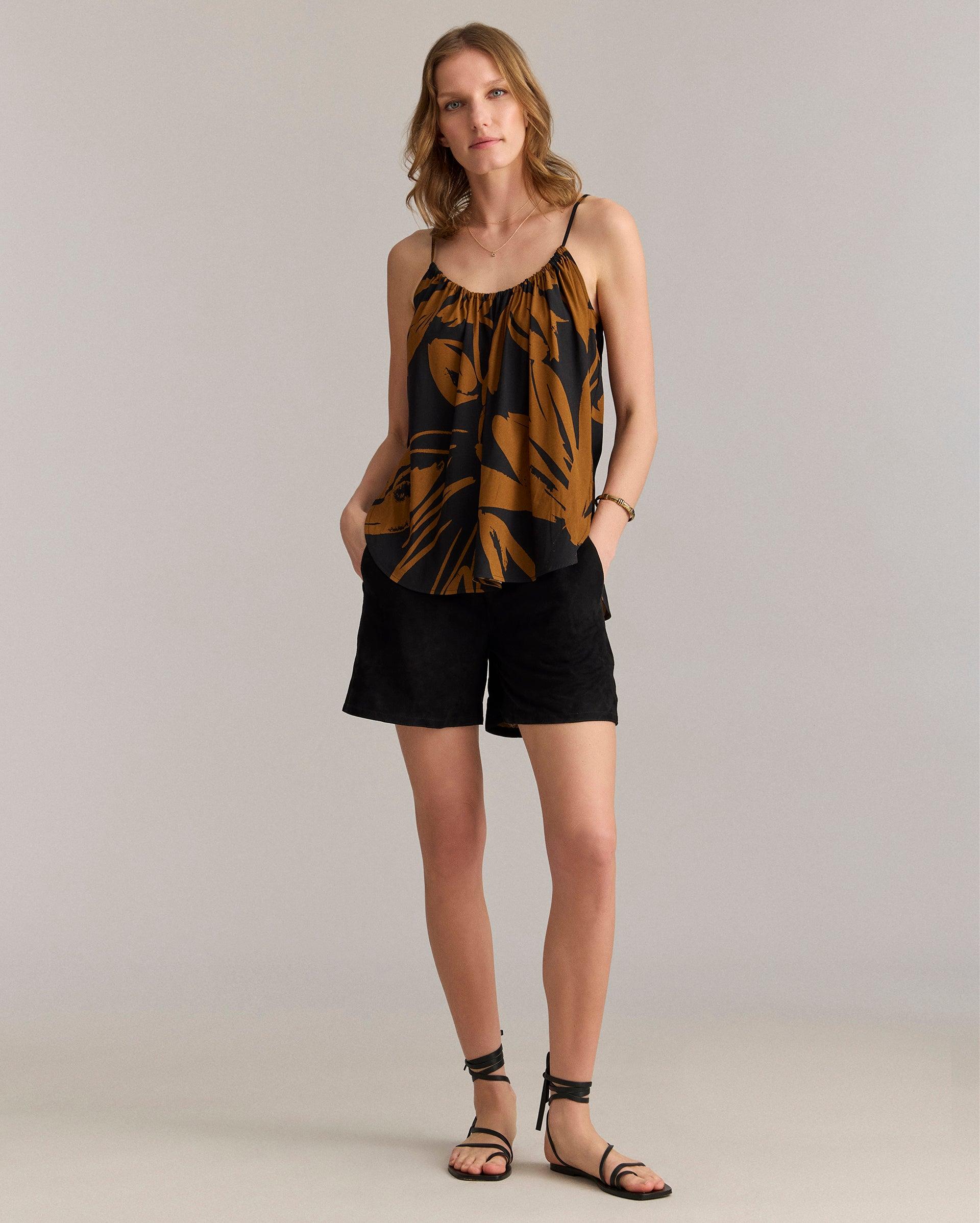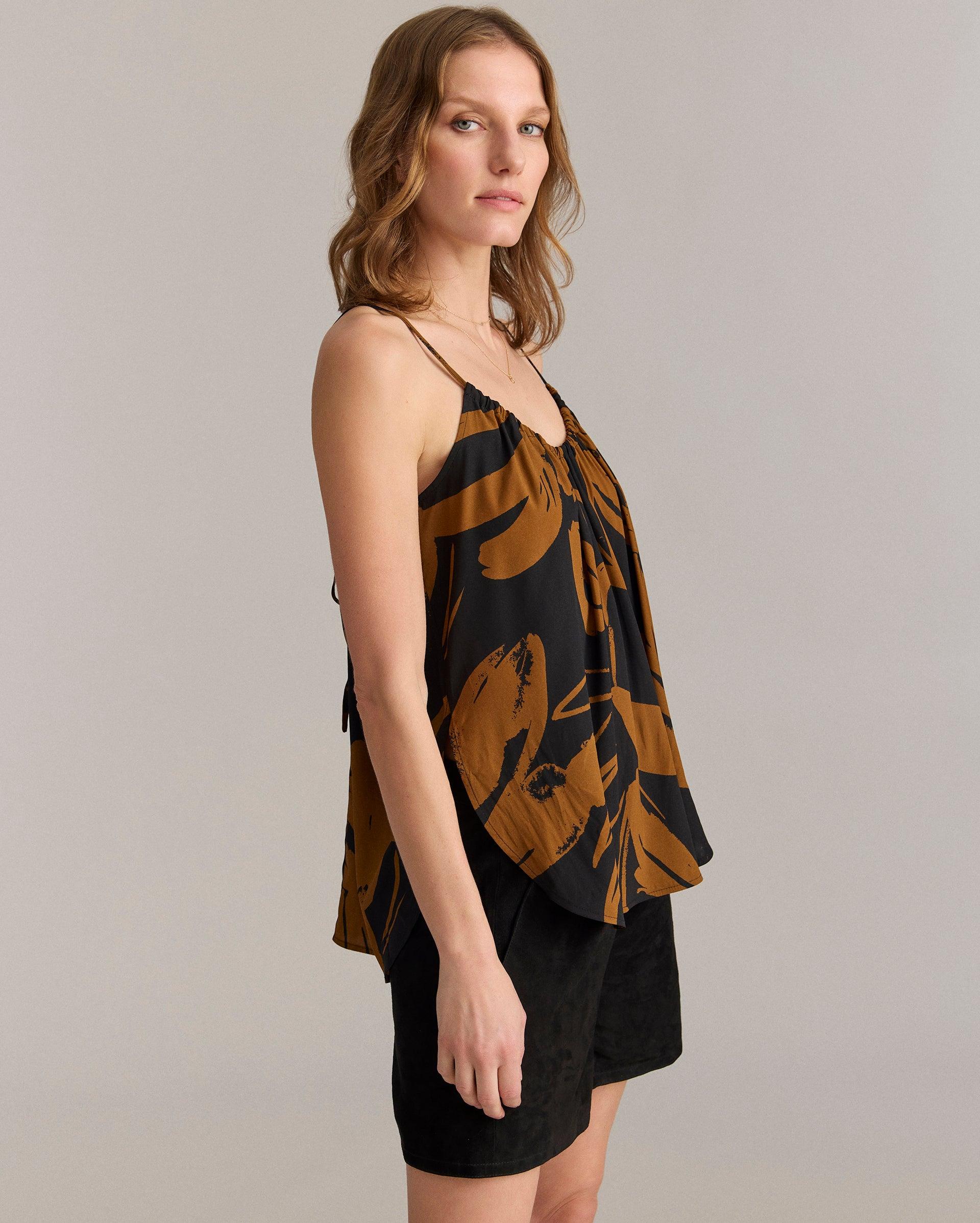 Silk Brush Stroke Floral Shirred Cami -
