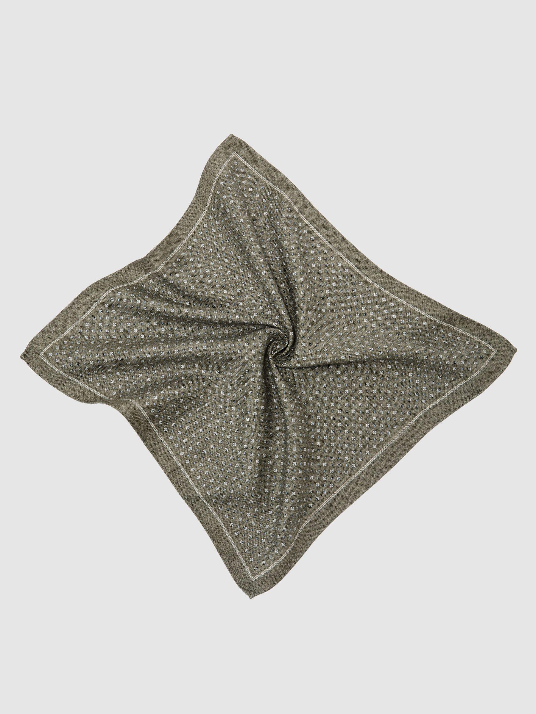 Silk Diamond-Print Pocket Square in Sage Green