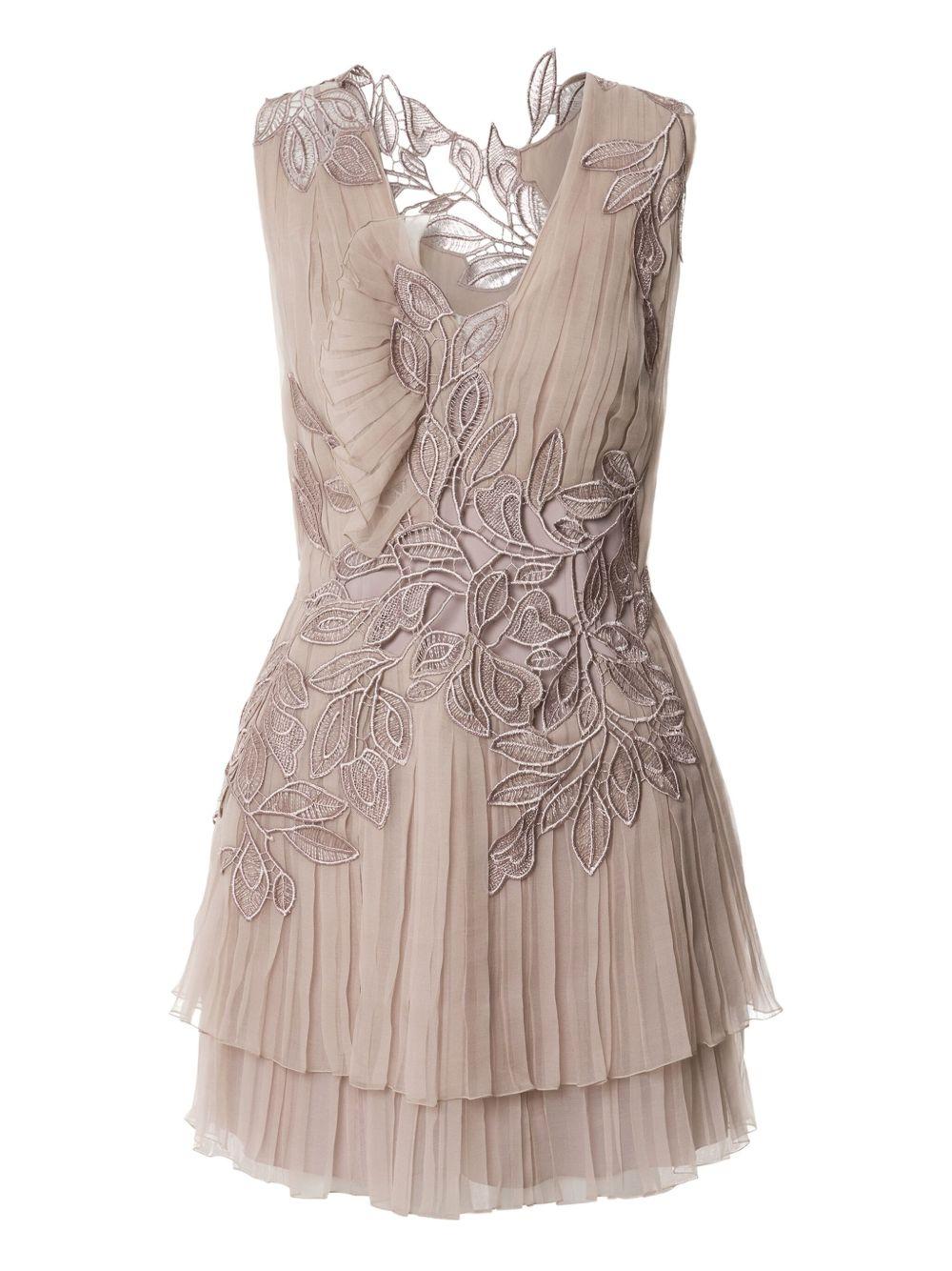 Alberta Ferretti silk dress | Neutrals | beige | V-neck | sleeveless | floral embroidery | Silk | Cocktail & Party Dresses | Dresses | Clothing | Women