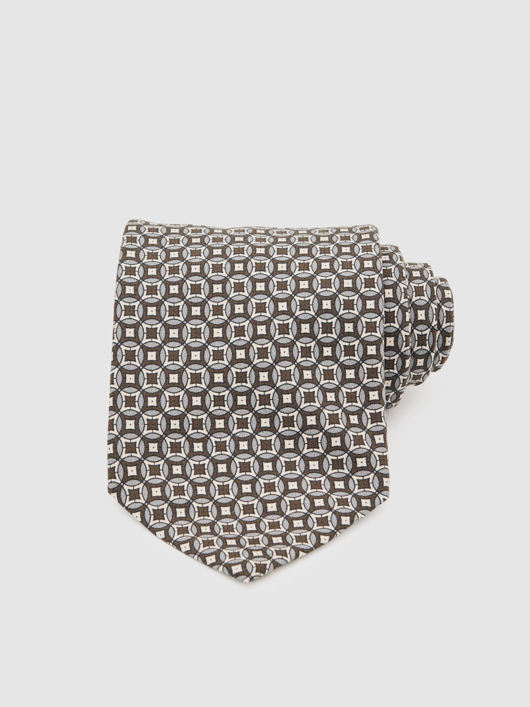 Silk Geometric-Print Tie in Chocolate Brown Multi