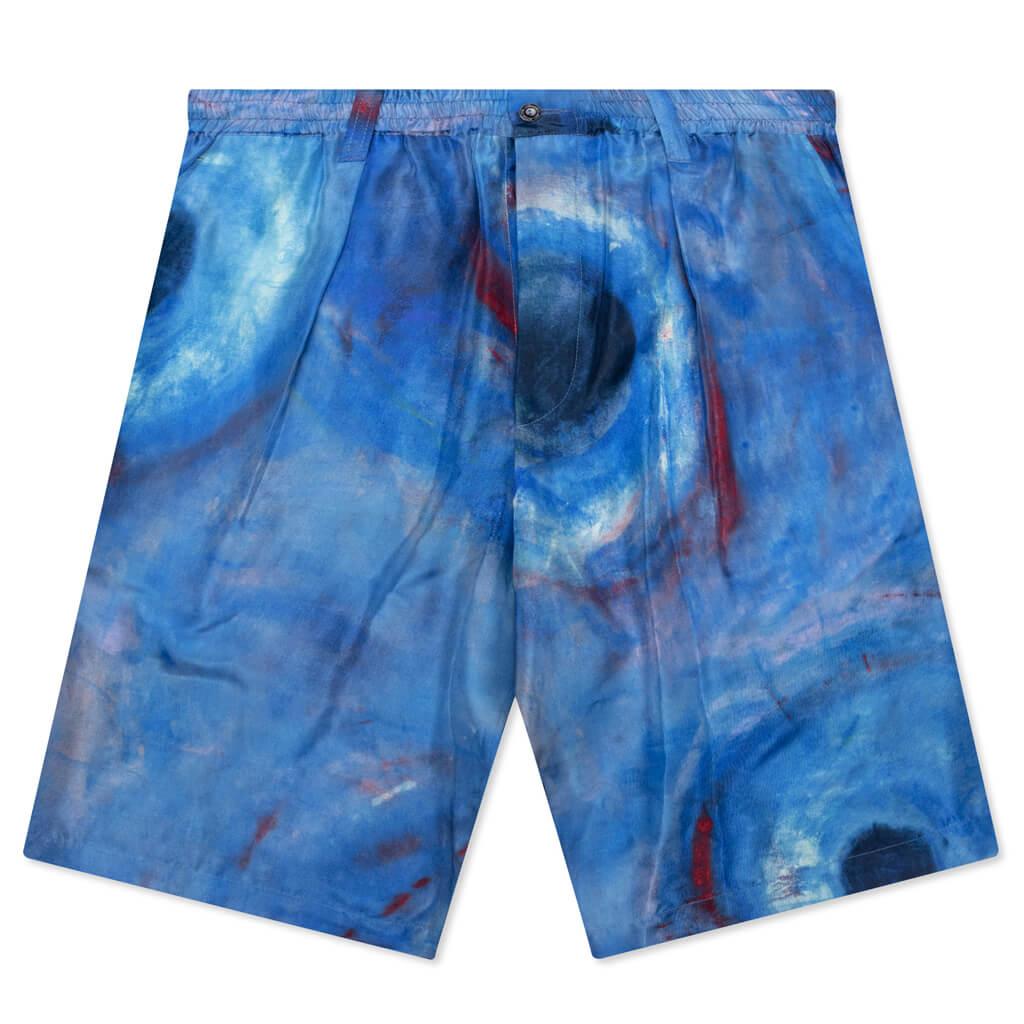 The Marni Silk Habotai Stretch Waist Shorts make an impression with their elevated aesthetic. The silhouette features an elastic waistband along with belt loops and a button and zip fly. The front pleats, side and rear pockets, and all-over artwork wrap up the design. 100% silk Elastic waistband All-over artwork Button/zip fly Side pockets Rear pockets Style No: PUMU0049A4 UTSF97 BBB44