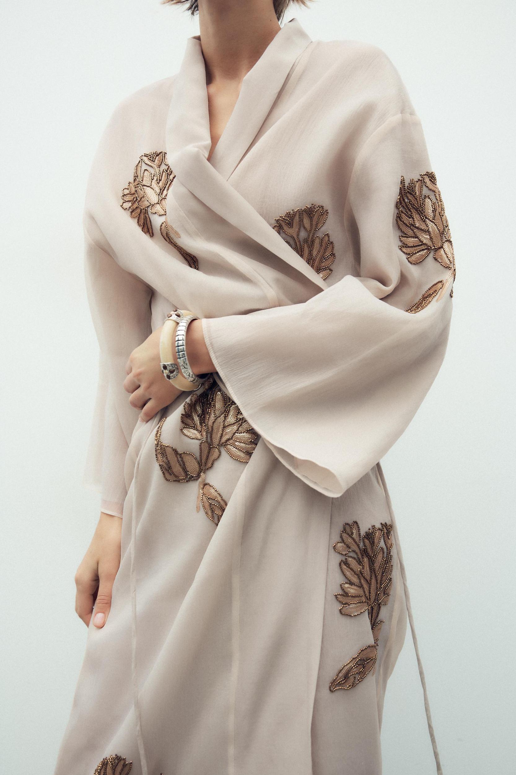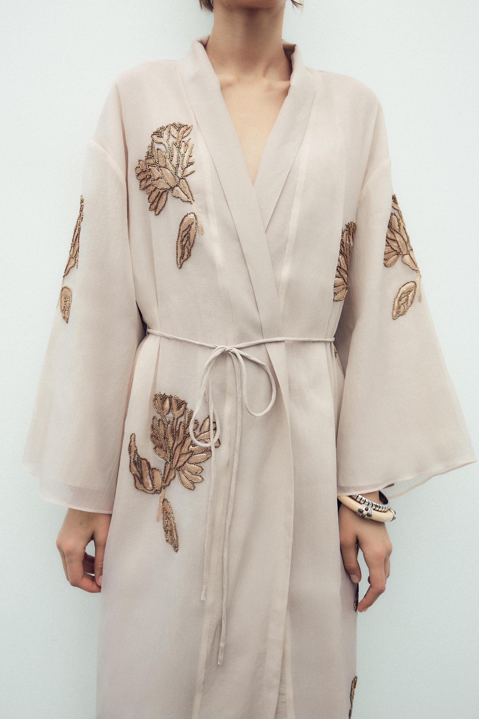 SILK KIMONO WITH EMBROIDERY AND BEADS