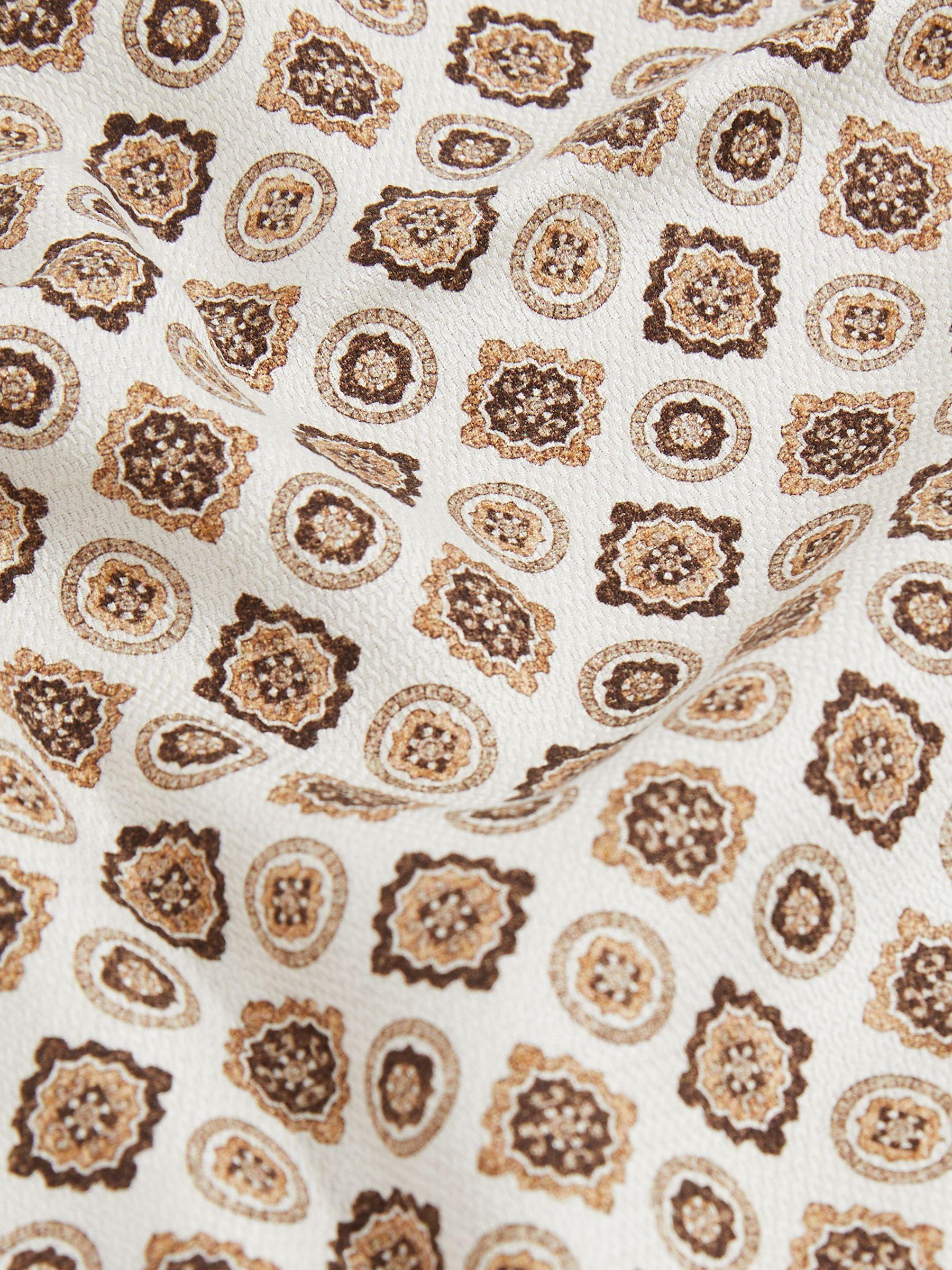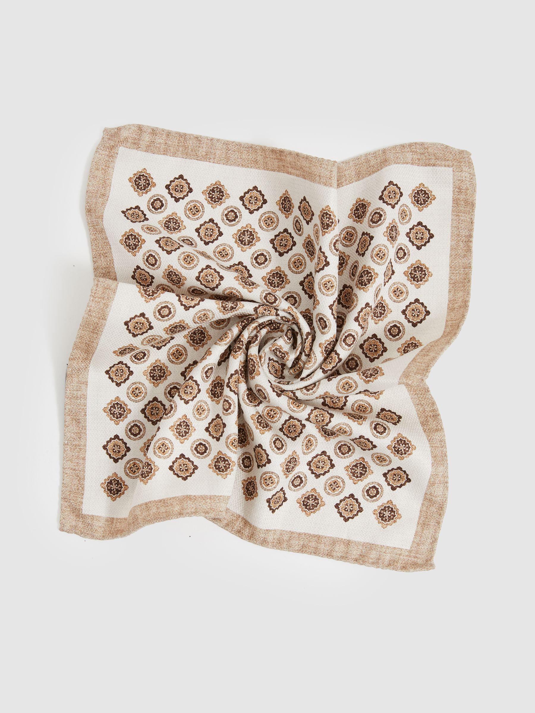 Silk Medallion-Print Pocket Square in Oatmeal