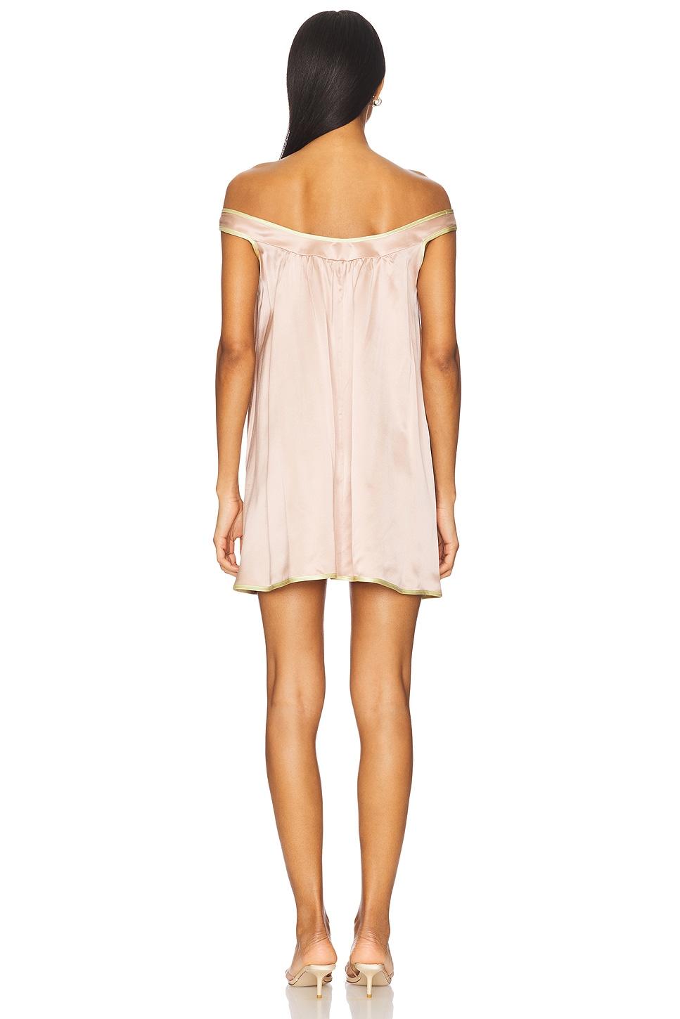 100% silk. Dry clean only. Unlined. Pull-on styling. Off the shoulder styling. Front pearlescent accent. Lightweight satin fabric. Made in US. Revolve Style No. BUCR-WD41. Manufacturer Style No. BUCIPF25-DR5.