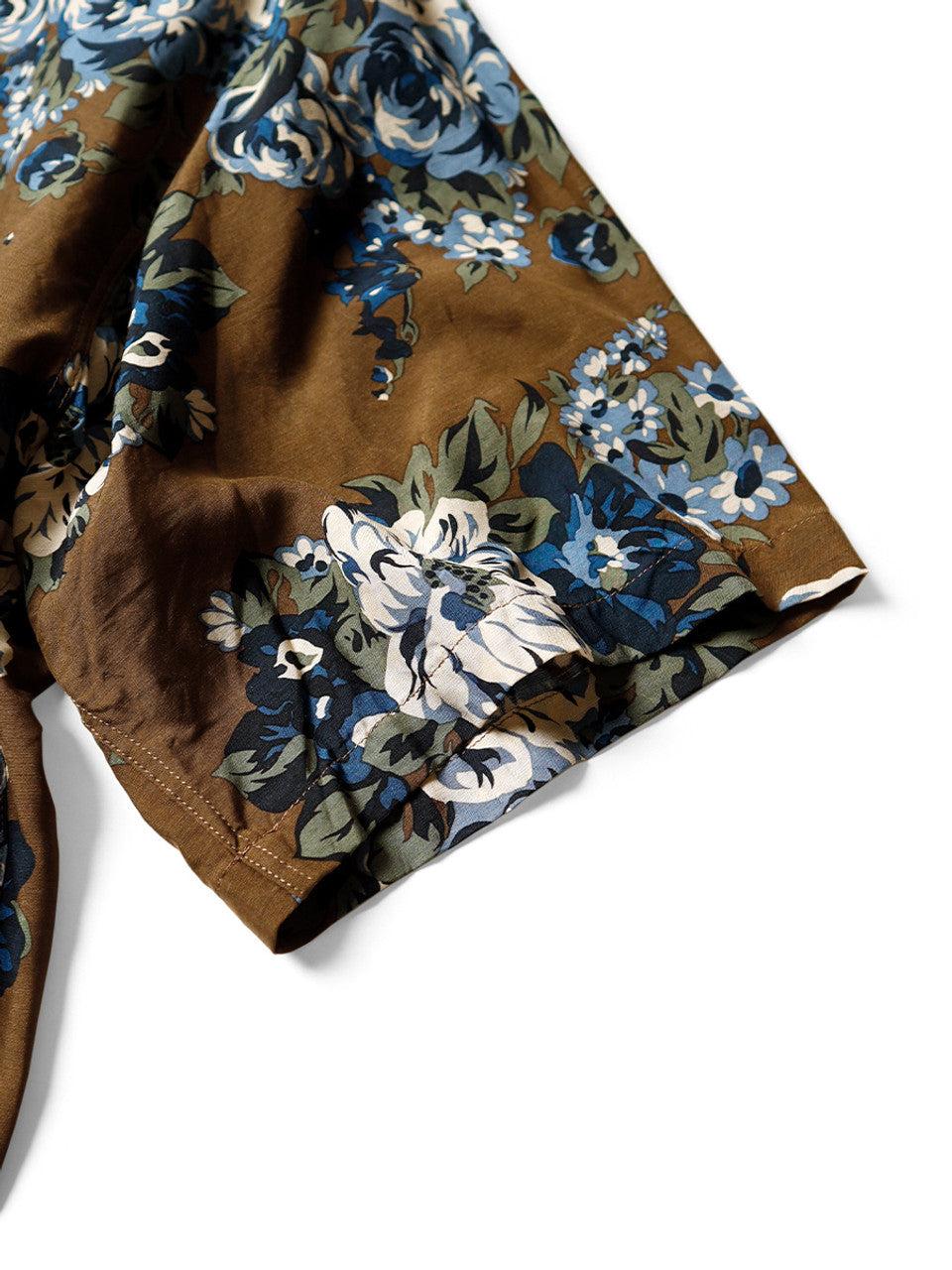 A pastoral floral aloha shirt. The back features a design of Maria holding a cookie in her hands. Made from silk-blend cupra that is smooth to the touch, it is lightweight and comfortable to wear. *As the fabric is all-over patterned, there may be individual differences in the placement of the pattern. The collar is large and long at the end. 96% cupra, 4% silk Made in Japan K2405SS202