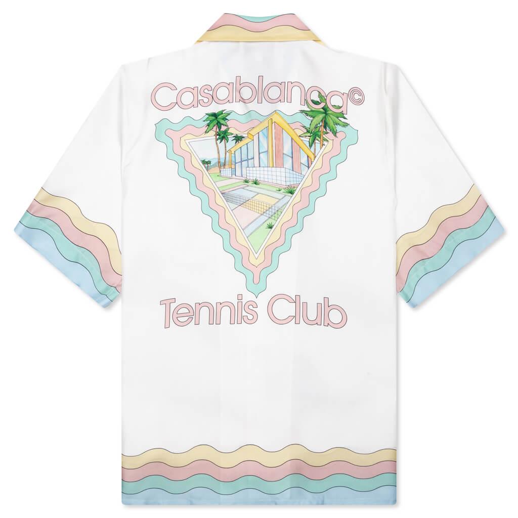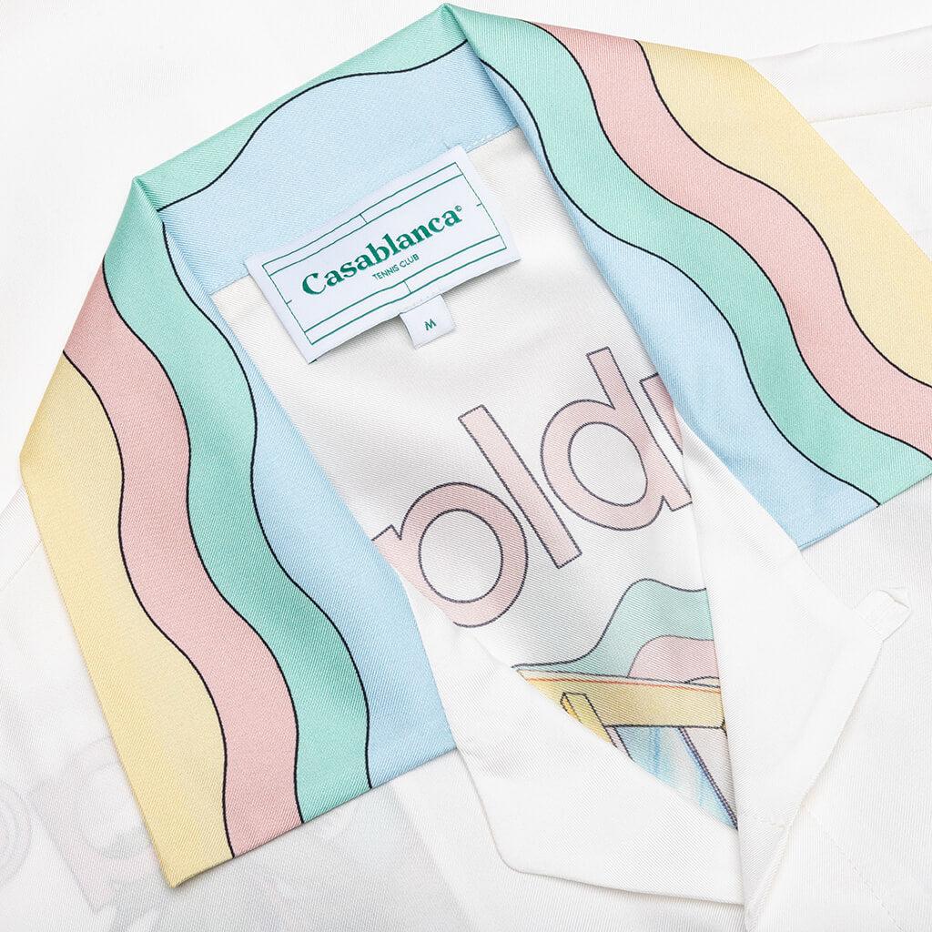 The Maison De Reve Twill Shirt is crafted from pure silk with a satin finish. It features a multicolor design on the collar and sleeves, adding a cool touch to its design. The camp collar and concealed front button fastening offer a clean, sophisticated look, complemented by short sleeves and a chest patch pocket. 100% Silk Satin finish Camp collar Design on collar and sleeves Concealed front button fastening Screen printed design on chest and back Short sleeves Chest patch pocket Style No: U-MPF24-SH-003-02