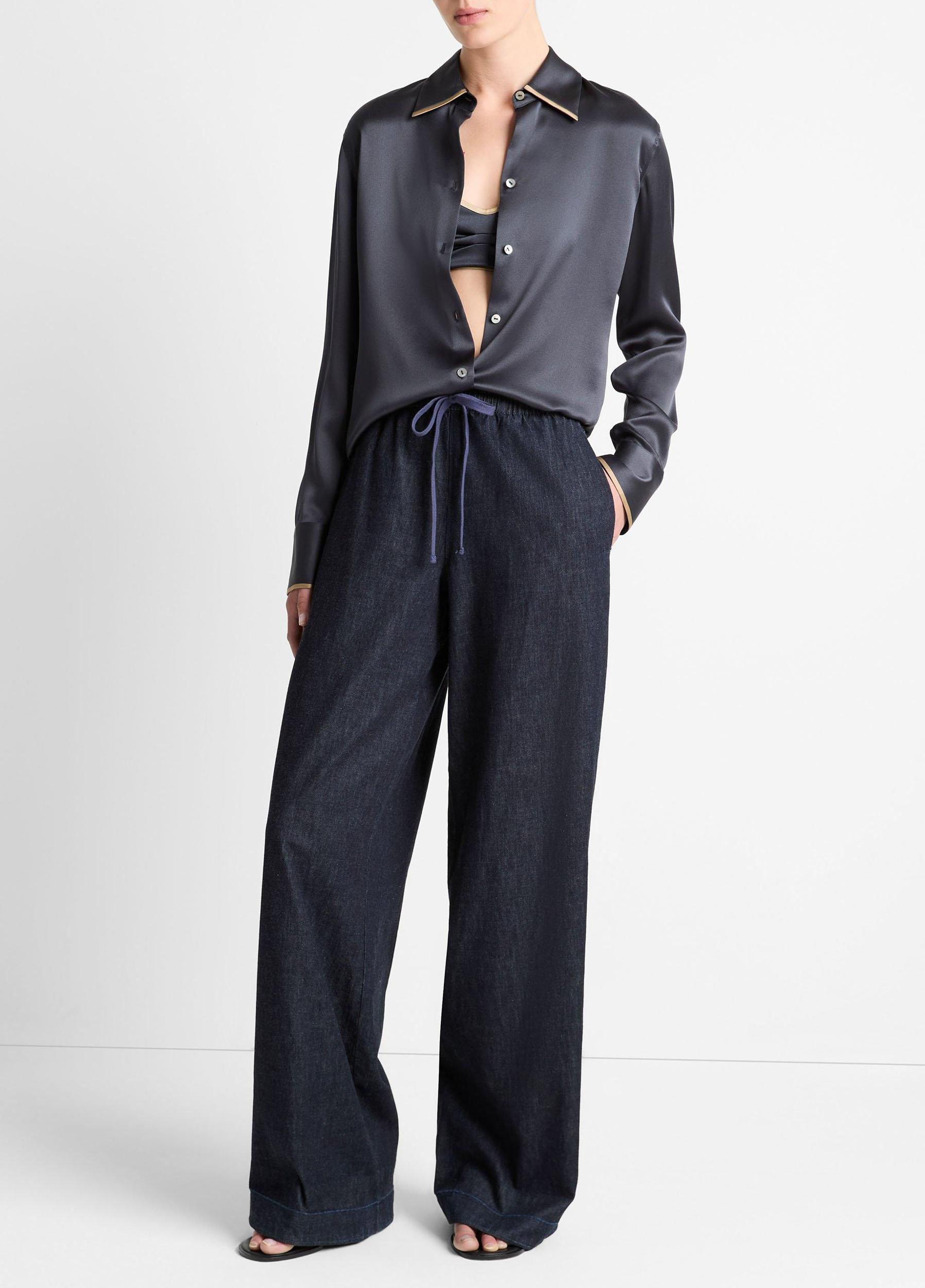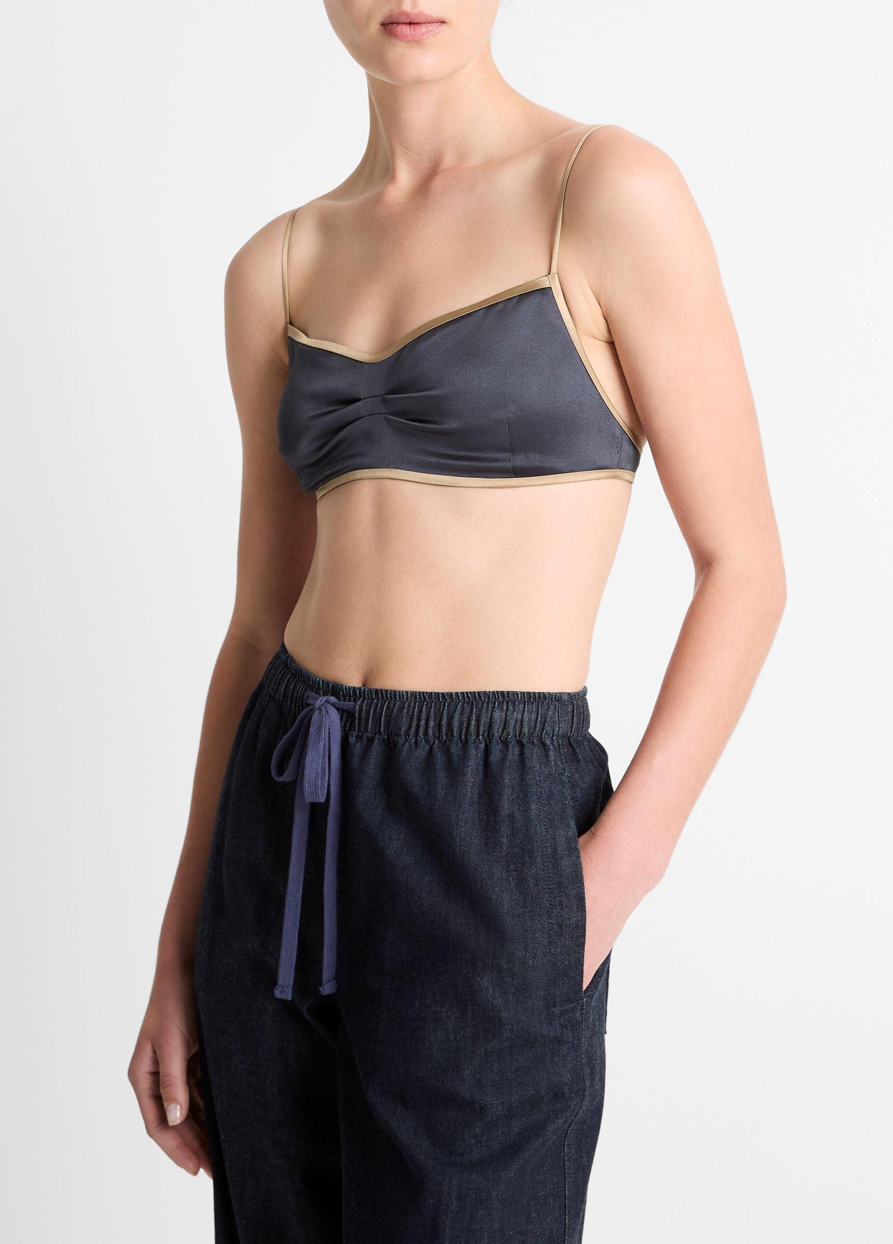 Made to be seen and layered, our shrunken camisole in silk satin is elevated with contrast tipping at the edges. It's finished with adjustable straps and an elasticized band at the back for a comfortable fit. Pair it back to the matching Silk Tipped Long-Sleeve Blouse.
