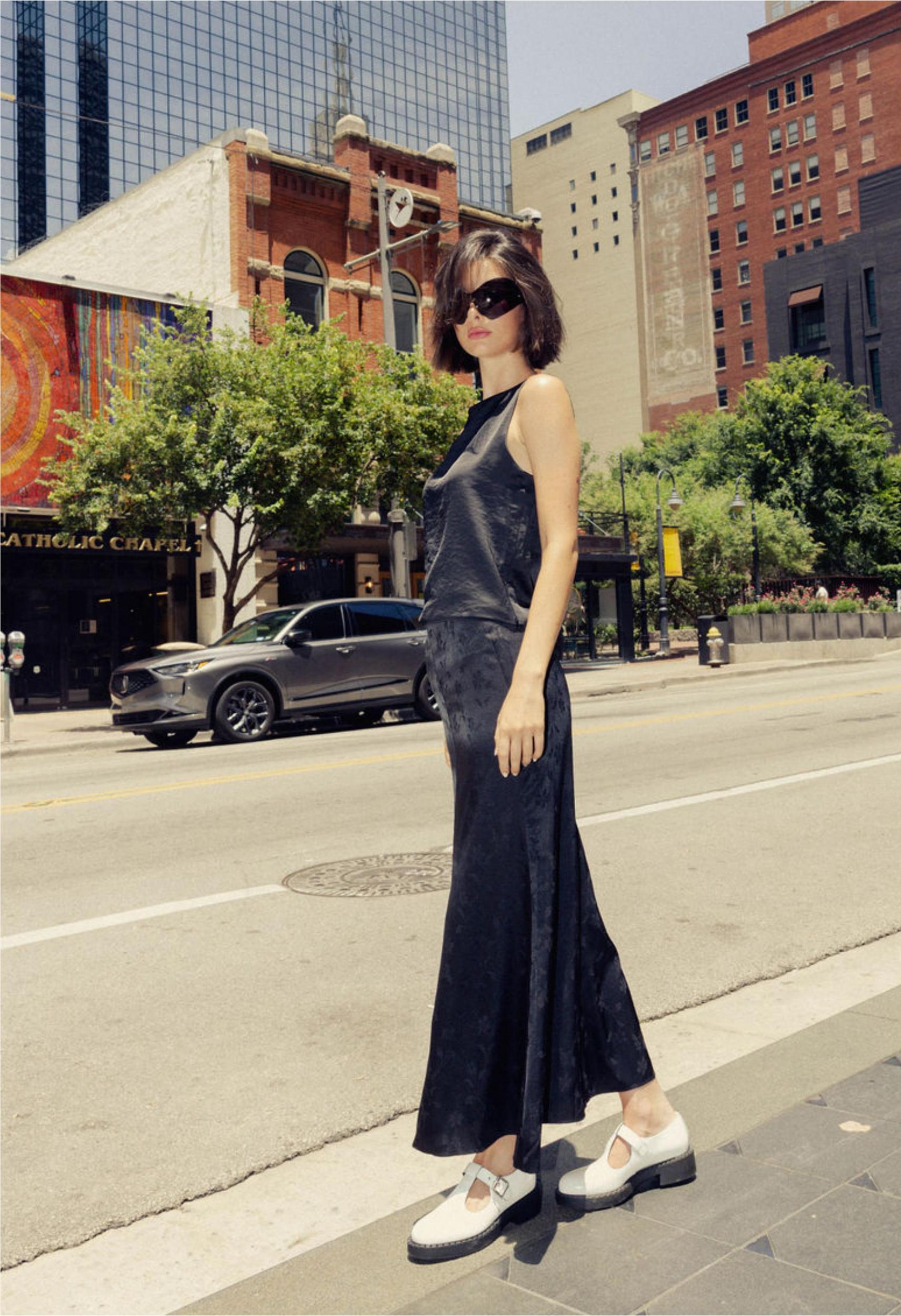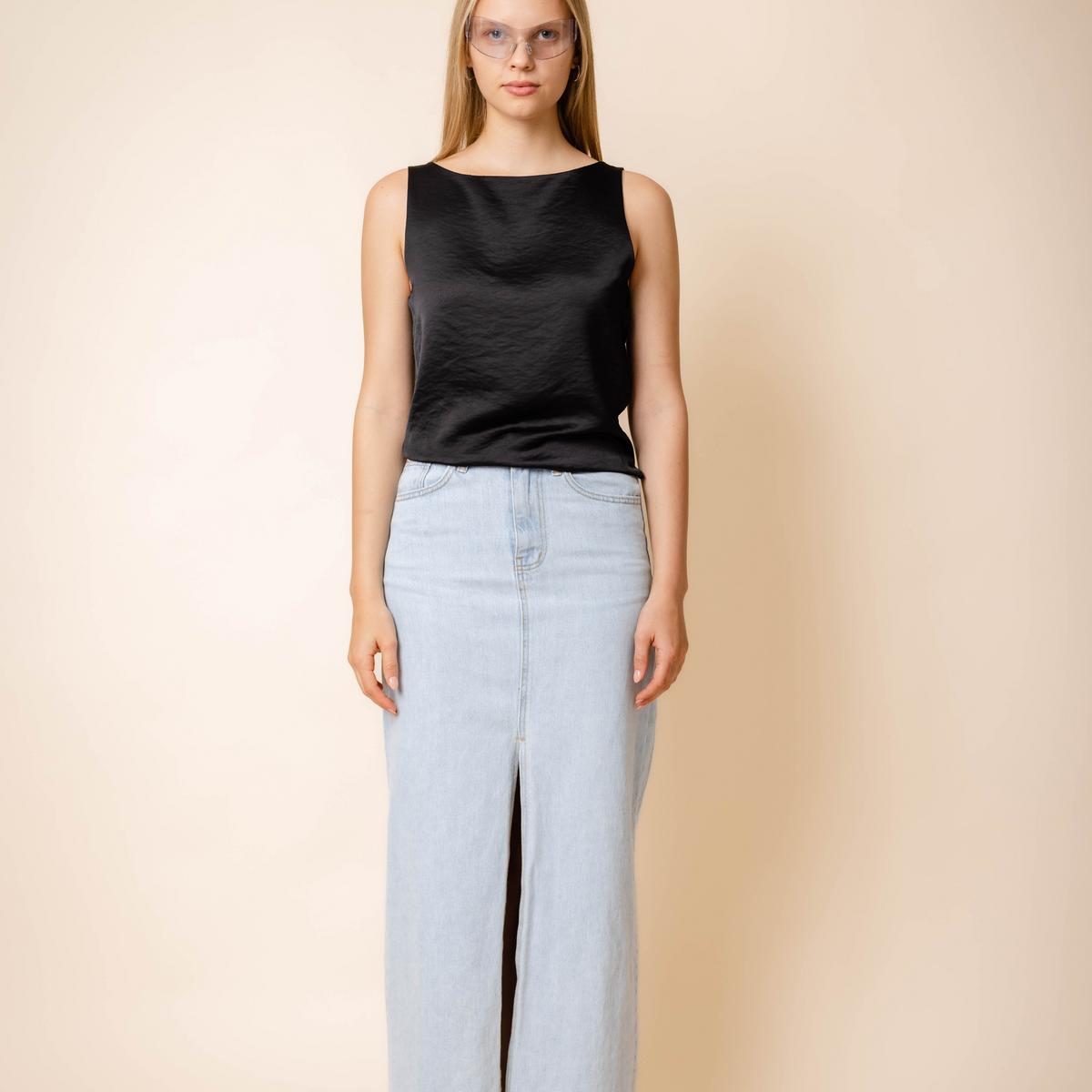 Sizes: XS/S and M Color: Black Lightweight silky fabric Boxy fit Sleeveless top Invisible zipper on side 59% rayon, 41% polyester Dry Clean By The NKC StoreProduct Measurements: XS/S: Bust: 88.9cm / 35in Length: 50.8cm / 20in M: Bust: 93.98cm / 37in Length: 53.34cm / 21inModel with brown hair is 177cm / 5'10" wearing Size XS/S Model with blonde hair is 172cm / 5′8″ wearing Size XS/S