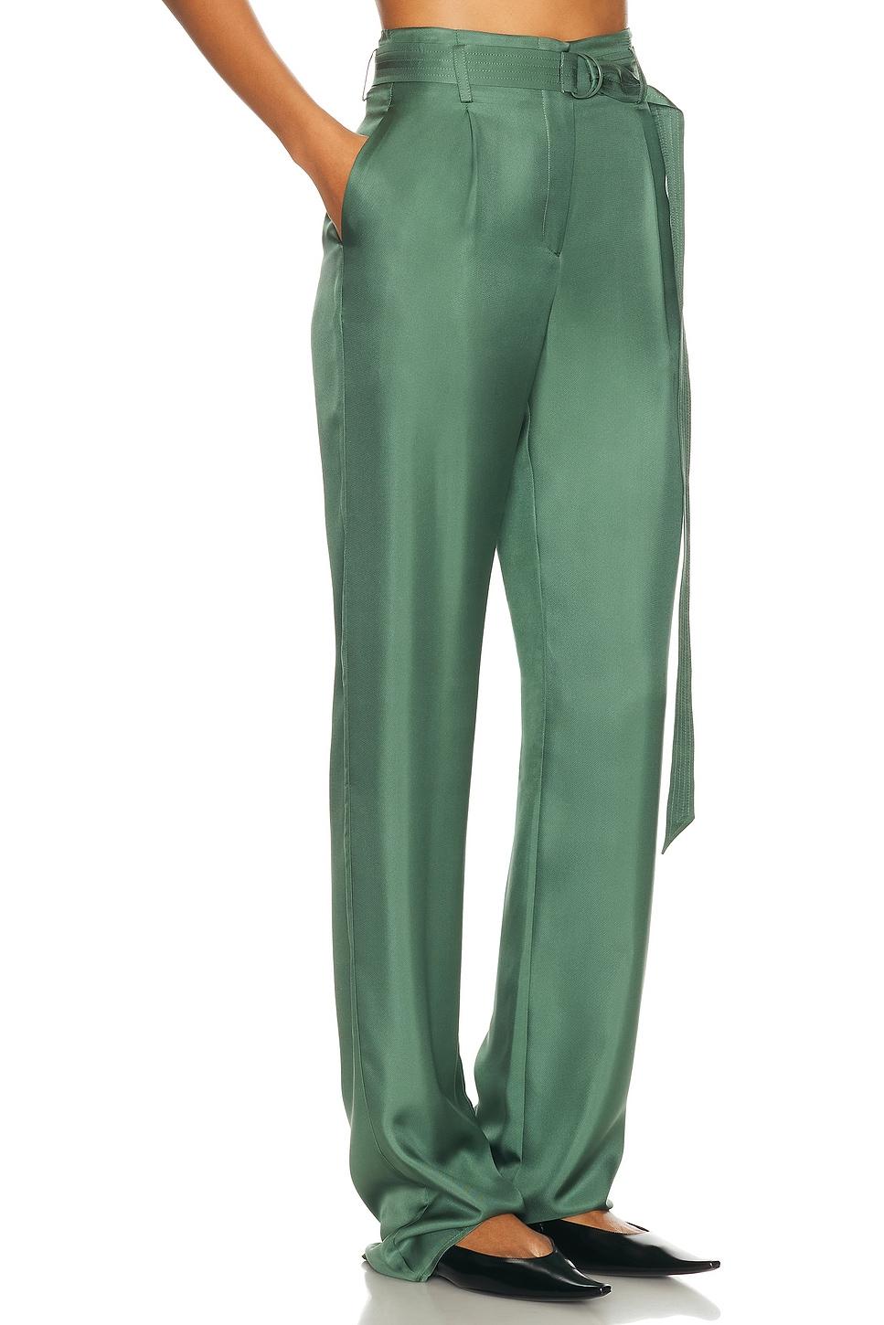pants100% organic silk / Made in USA of imported materials / Dry clean only / Zip fly closure / Detachable belt with D-ring closure / Side seam and back faux welt pockets / Midweight satin fabric / Our Style No. LNTF-WP28 / Manufacturer Style No. R3257012OGI / Model is wearing size 0.