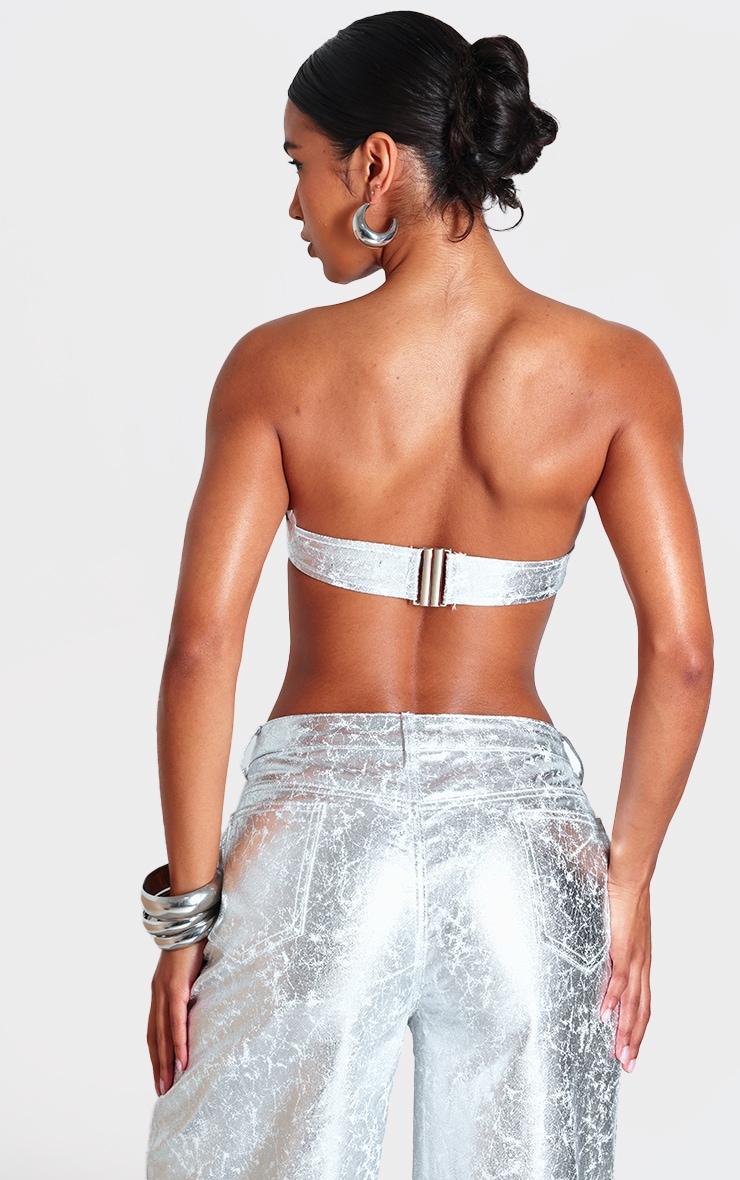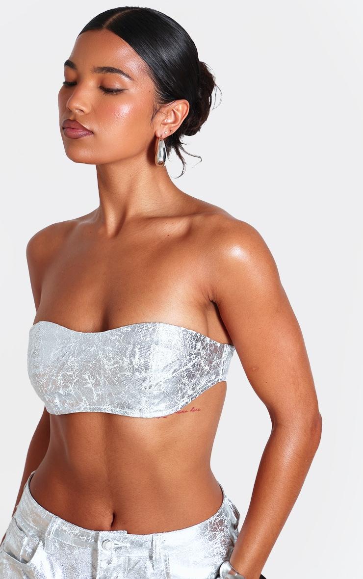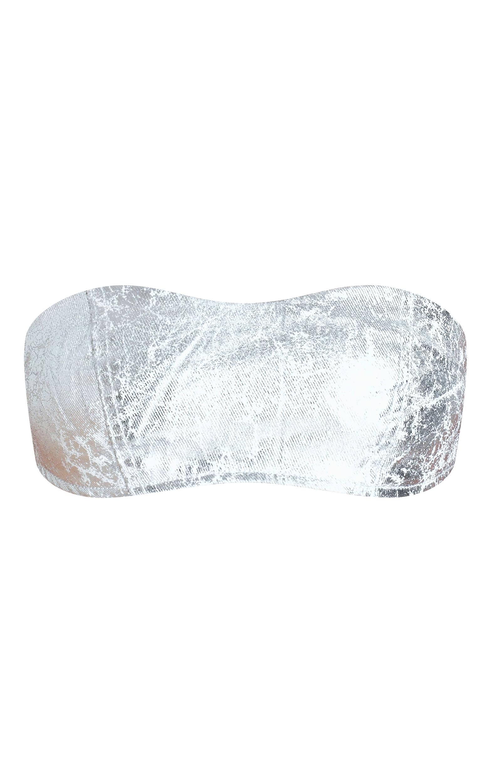 Make a statement this weekend with this silver coated crackle effect denim bandeau top, we just can't get enough. This top features a silver coated denim material with a crackle effect design that will bring all the attitude, what more could you want? Style this bandeau top with the matching bottoms, clear heels and a shoulder bag to really stand out. Length approx 16.5cm/6.5inch (Based on a sample size UK 8) Model wears size UK 8/ EU 36/ AUS 8/ US 4Model Height - 5ft 6inchp]:!mb-4inch>Category: DenimProduct type: Denim TopColor: SilverMaterial: Rigid DenimOccasion: Day