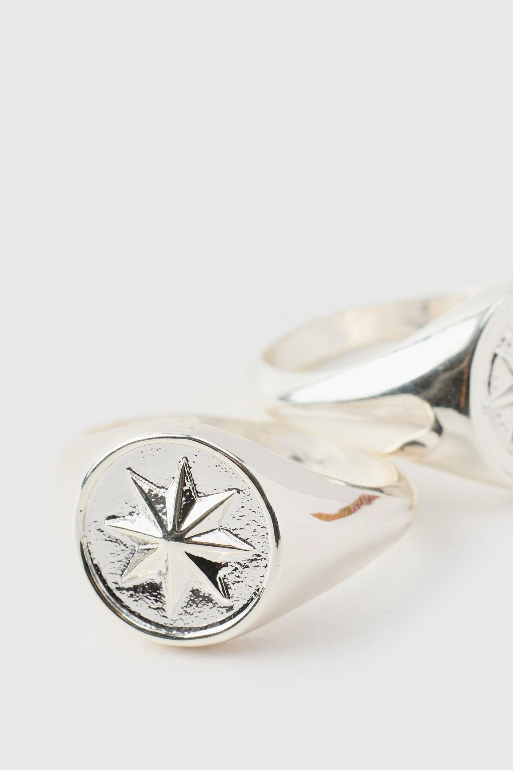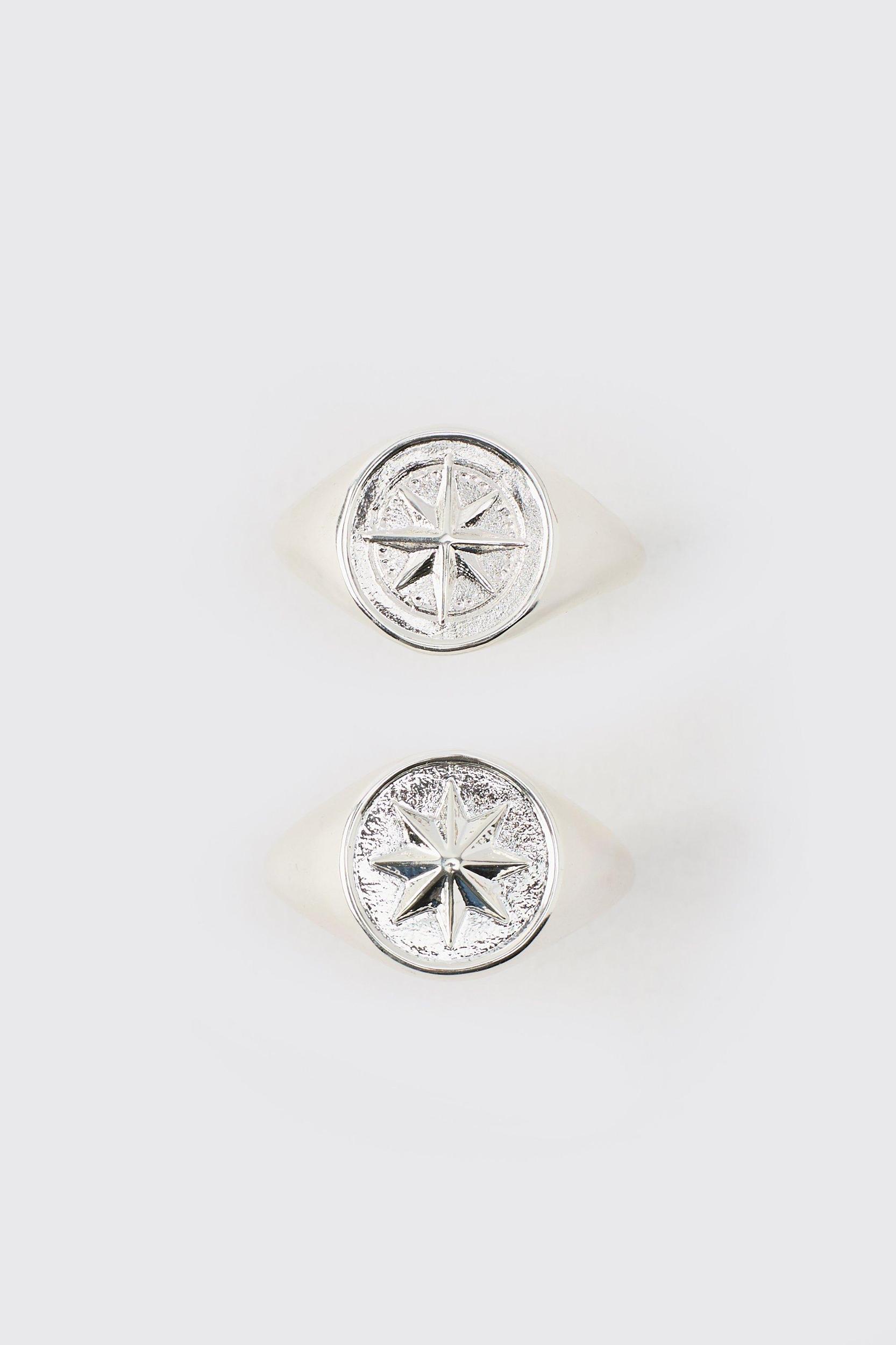 Silver Compass Rings In A 2 Pack | boohooMAN USA