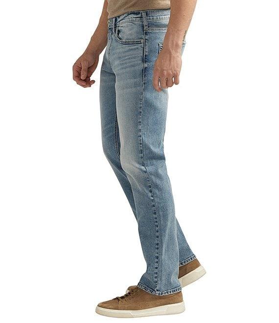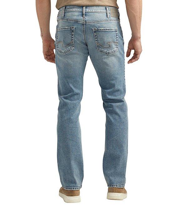 From Silver Jeans Co., these jeans feature: Classic fit Straight legs Medium indigo wash Engineered with a streamlined fit through the hips and thighs Sits at the waist Belt loops Zip/button-front closure 16" leg openings 5-pocket styling Innovative stretch technology Cotton/polyester /elastane Machine wash/tumble dry Imported