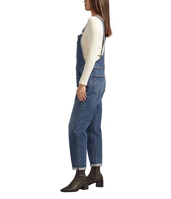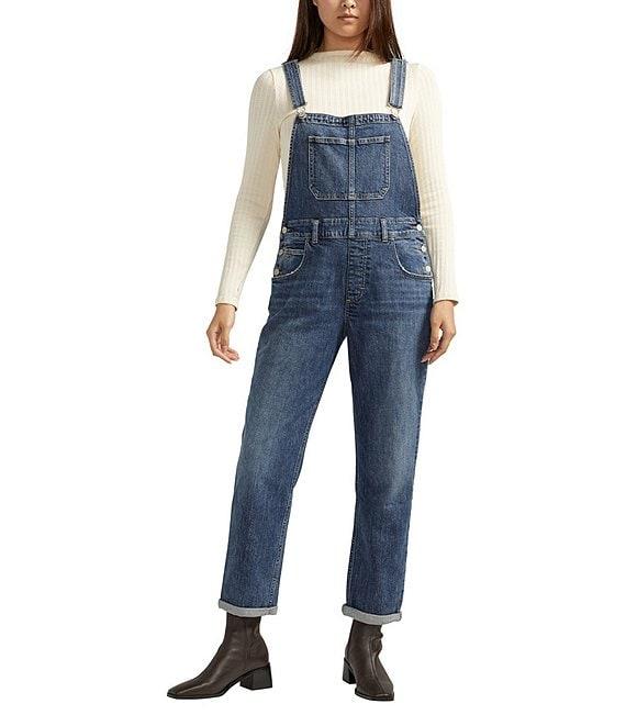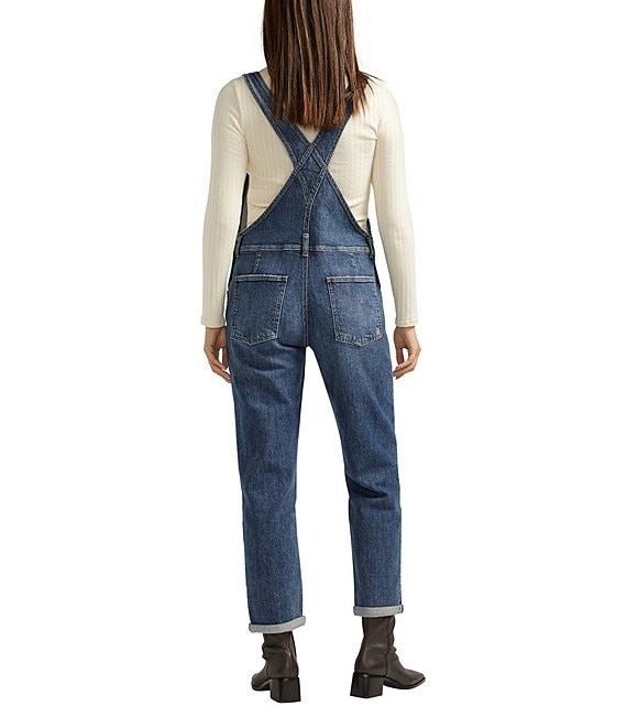 From Silver Jeans Co., these overalls feature: Baggy chic fit 3-side buttons Straight legs Mid-rise waist Low stretch fabrication Machine washable 94% cotton 5% polyester 1% elastane Imported.