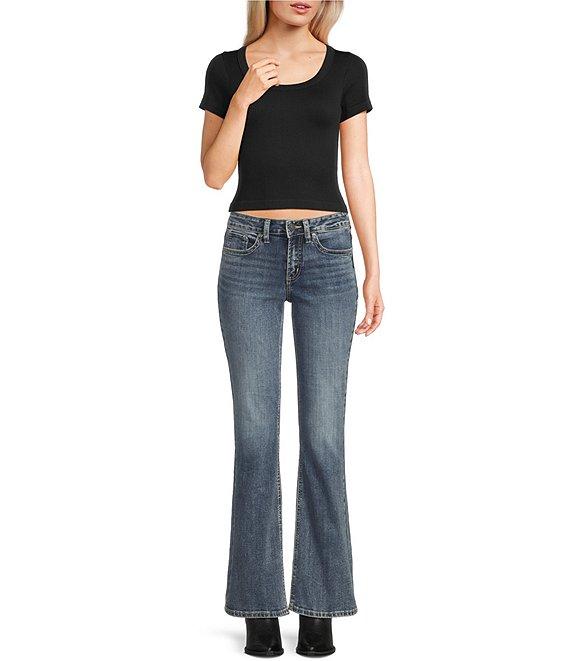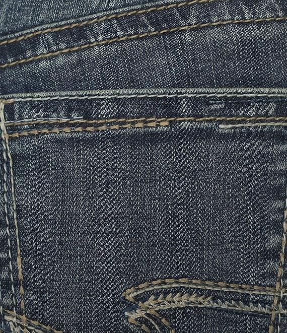 From Silver Jeans Co., these jeans feature: Contoured waistband ensures a zero-gap fit Belt loops Bootcut style in a medium indigo wash Power Stretch denim for the highest level of stretch, great flexibility, shape retention, and softness 5-pocket styling with a zip fly and button closure Approx. 18.5" leg opening, 9.25'' mid rise Cotton/polyester/nylon/elastane Machine wash/tumble dry Imported.
