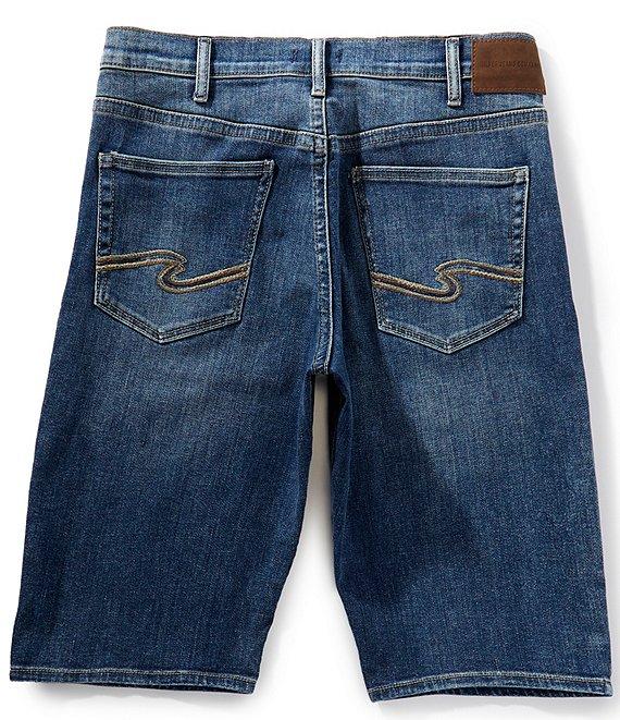 From Silver Jeans Co,.these shorts feature: Mid rise Rigid waist Relaxed fit 5 jean pocket Belt loopsFront zip and button closure Moderate stretch long bermuda length 12" inseam 15" back rise Denim/cotton Machine wash/tumble dry Imported